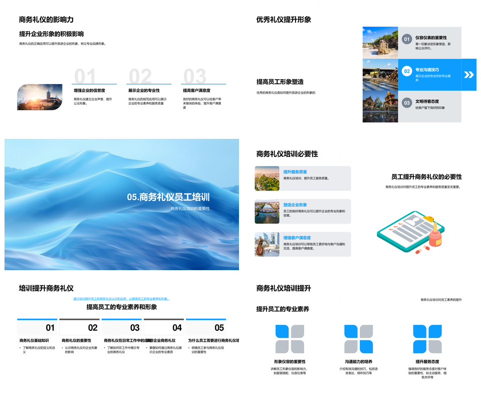 这是一张2025旅游业商务礼仪培训服务形象发展趋势PPT模板,包含2025、旅游业、商务礼仪、培训服务、形象、发展趋势等主题内容,也可用作2025旅游业商务礼仪培训、2025旅游业商务礼仪服务、2025旅游业培训服务形象、2025商务礼仪培训服务、旅游业商务礼仪培训服务、商务礼仪培训服务形象、培训服务形象发展趋势、2025旅游业商务礼仪、旅游业商务礼仪培训、商务礼仪培训服务、培训服务形象、服务形象发展趋势、2025旅游业形象、旅游业形象发展趋势、2025发展趋势等PPT场景使用。 风云办公提供的2025旅游业商务礼仪培训服务形象发展趋势PPT模板,下载格式为pptx,一共24页,作品中文字及图均可以修改和编辑,图片更改请在作品中右键图片并更换,文字修改请直接点击文字进行修改。