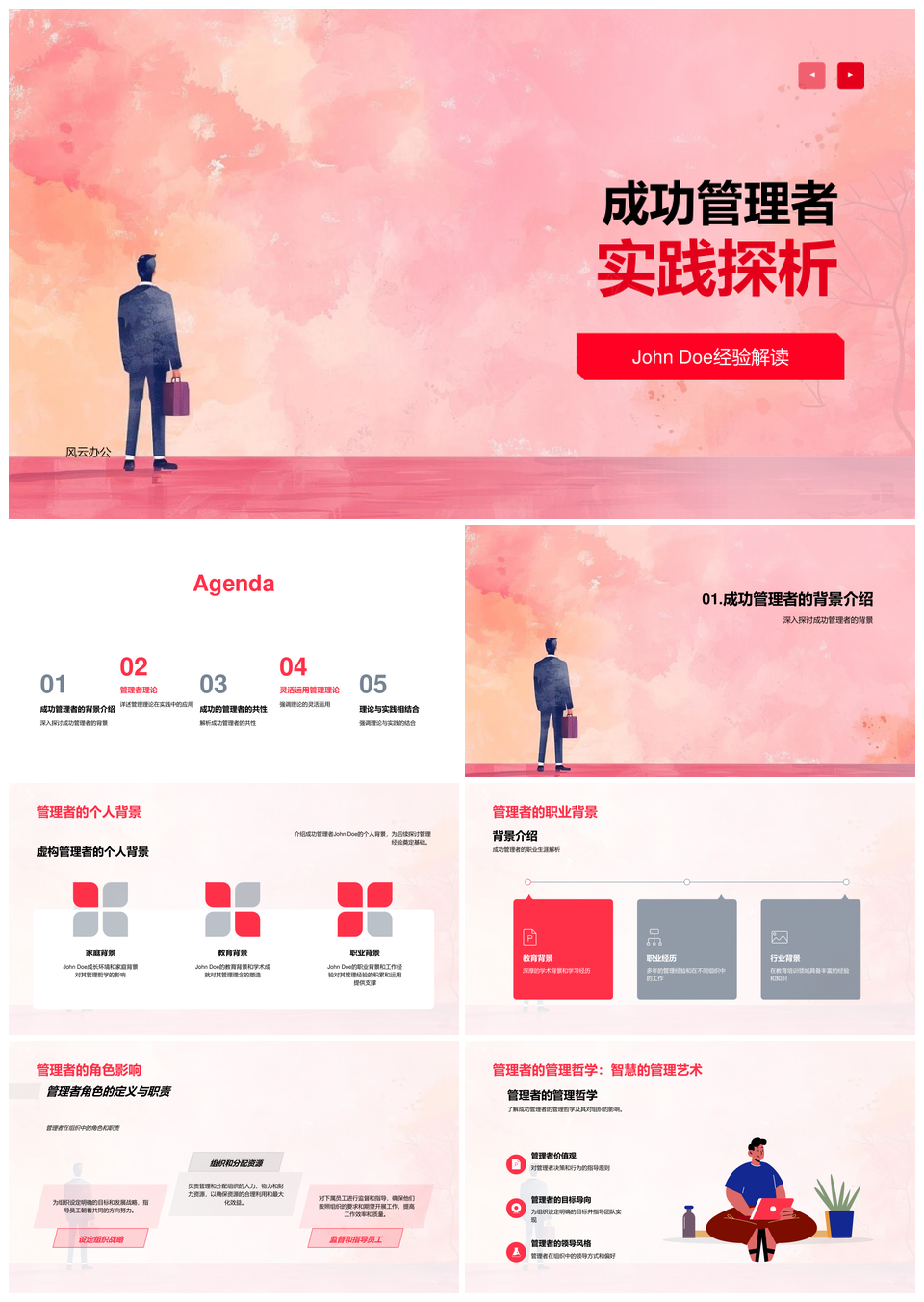 成功管理者JohnDoe管理理论实践经验哲学关键特质灵活运用组织成功PPT模板推荐