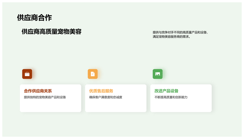 这是一张宠物美容服务市场分析规模增长目标客户服务商工具PPT模板,包含宠物、美容服务、市场、分析、规模、增长、目标、客户、服务商、工具等主题内容,也可用作宠物美容服务市场分析规模增长、宠物美容服务规模增长目标客户、市场分析规模增长服务商工具、规模增长目标客户服务商工具、目标客户服务商工具宠物美容服务、市场分析规模增长目标客户、宠物美容服务市场分析服务商工具、宠物美容服务目标客户服务商工具、市场分析目标客户服务商工具、宠物美容服务规模增长服务商工具、规模增长目标客户服务商工具、市场分析规模增长目标客户服务商工具、宠物美容服务市场分析目标客户、市场分析目标客户服务商工具、宠物美容服务市场分析目标客户服务商工具等PPT场景使用。 风云办公提供的宠物美容服务市场分析规模增长目标客户服务商工具PPT模板,下载格式为pptx,一共19页,作品中文字及图均可以修改和编辑,图片更改请在作品中右键图片并更换,文字修改请直接点击文字进行修改。