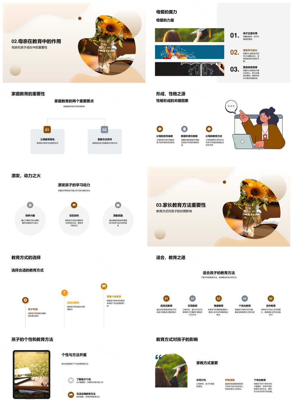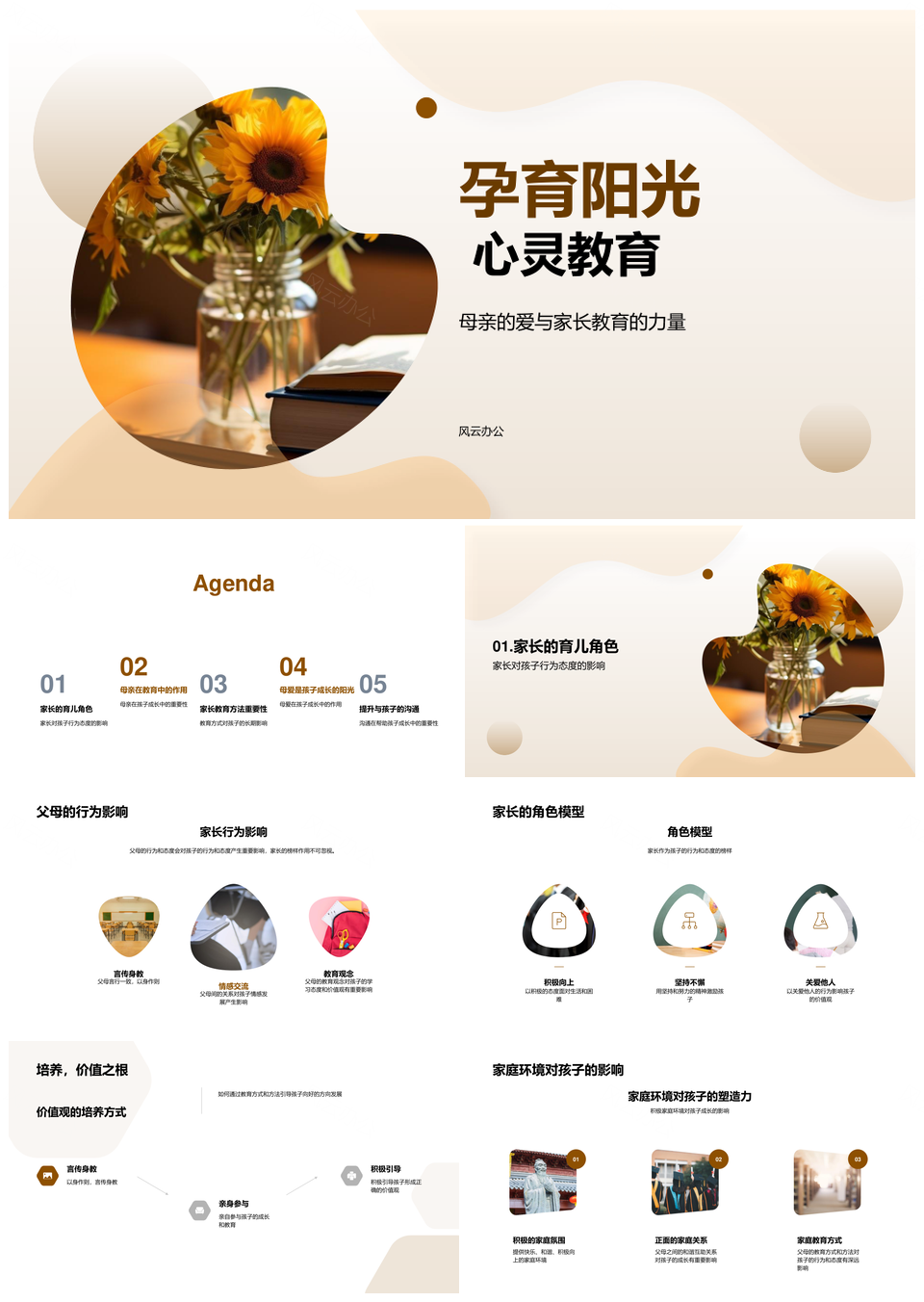 风云办公提供的母爱育葵家教塑心阳光成长PPT模板,下载格式为pptx,一共28页,作品中文字及图均可以修改和编辑,图片更改请在作品中右键图片并更换,文字修改请直接点击文字进行修改。