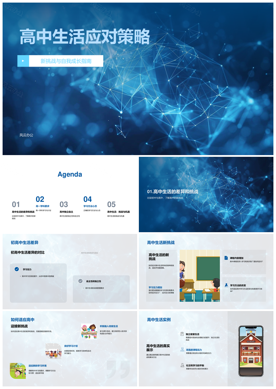 风云办公提供的高中生应对新挑战成长管理策略PPT模板,下载格式为pptx,一共28页,作品中文字及图均可以修改和编辑,图片更改请在作品中右键图片并更换,文字修改请直接点击文字进行修改。