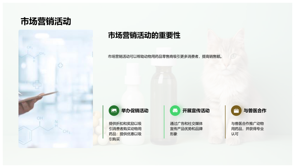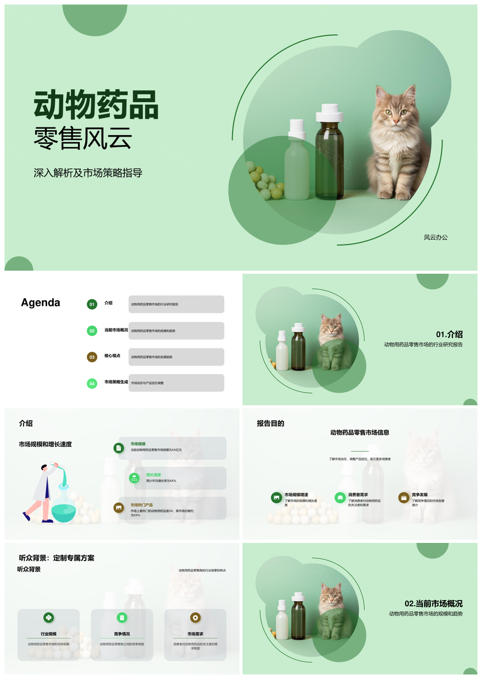 风云办公提供的动物药品零售市场趋势行业分析PPT模板,下载格式为pptx,一共19页,作品中文字及图均可以修改和编辑,图片更改请在作品中右键图片并更换,文字修改请直接点击文字进行修改。