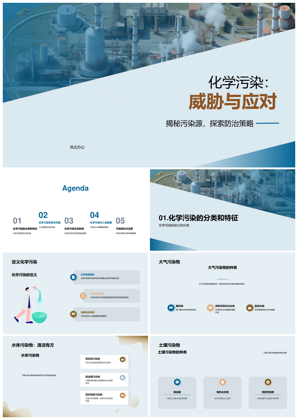 风云办公提供的化学污染工农业排放环境影响防治PPT模板,下载格式为pptx,一共29页,作品中文字及图均可以修改和编辑,图片更改请在作品中右键图片并更换,文字修改请直接点击文字进行修改。