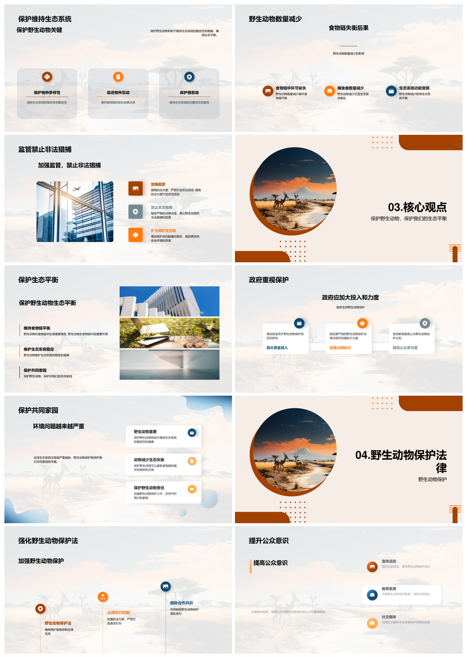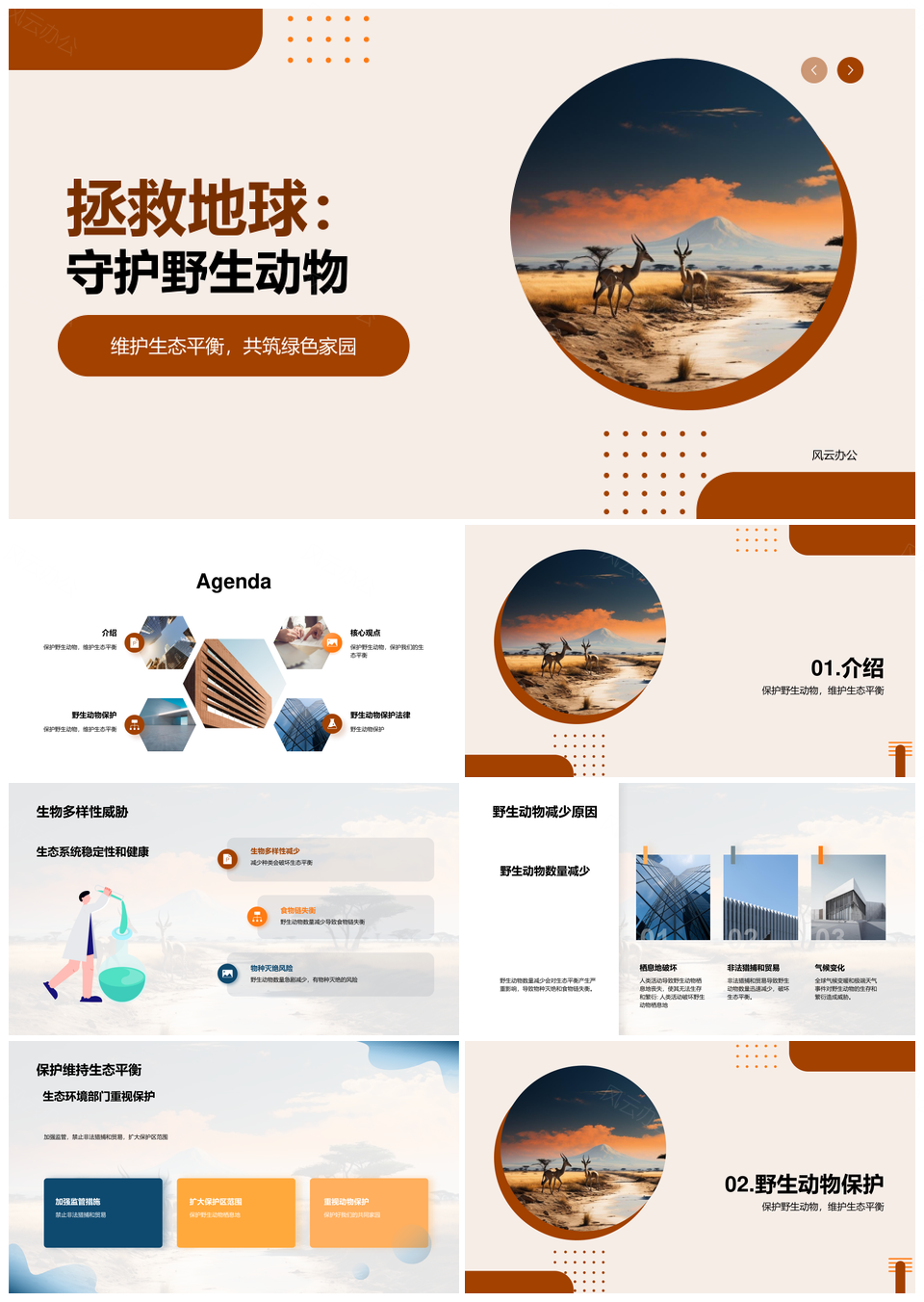 风云办公提供的守护野生动物保护生态平衡禁非法猎捕PPT模板,下载格式为pptx,一共19页,作品中文字及图均可以修改和编辑,图片更改请在作品中右键图片并更换,文字修改请直接点击文字进行修改。