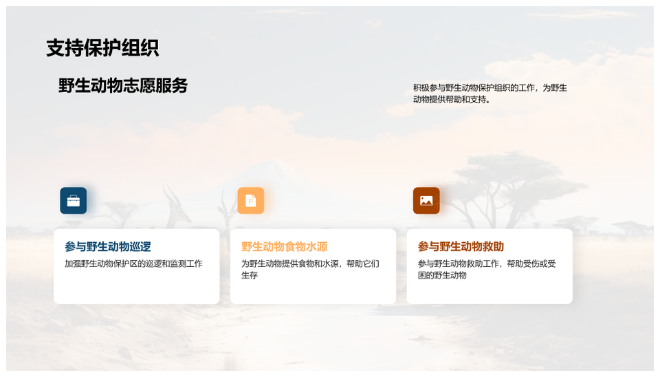 这是一张守护野生动物保护生态平衡禁非法猎捕PPT模板,包含守护、野生动物、保护、生态、平衡、禁、非法猎捕等主题内容,也可用作守护野生动物保护生态平衡、野生动物保护生态平衡禁非法猎捕、守护生态平衡禁非法猎捕、守护野生动物保护生态、保护生态平衡禁非法猎捕、野生动物保护生态平衡、守护野生动物保护、保护生态平衡、生态平衡禁非法猎捕、守护生态平衡、野生动物保护、生态平衡、非法猎捕、守护保护、野生动物等PPT场景使用。