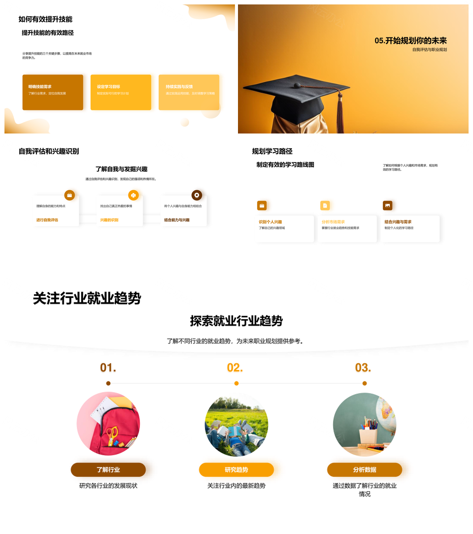 风云办公提供的未来职业规划与科技创新关键技能指南PPT模板,下载格式为pptx,一共23页,作品中文字及图均可以修改和编辑,图片更改请在作品中右键图片并更换,文字修改请直接点击文字进行修改。