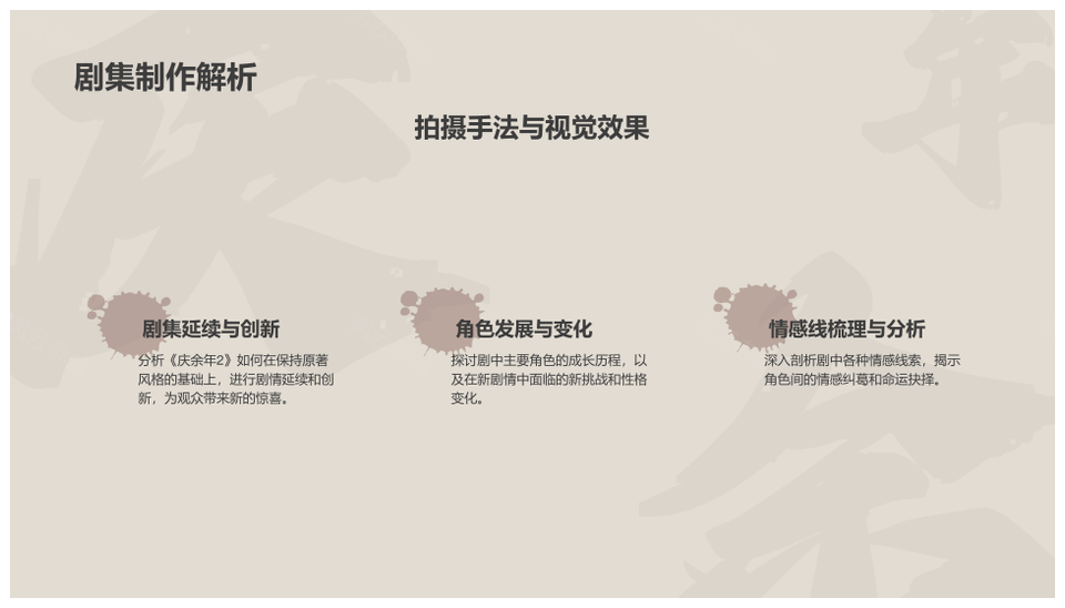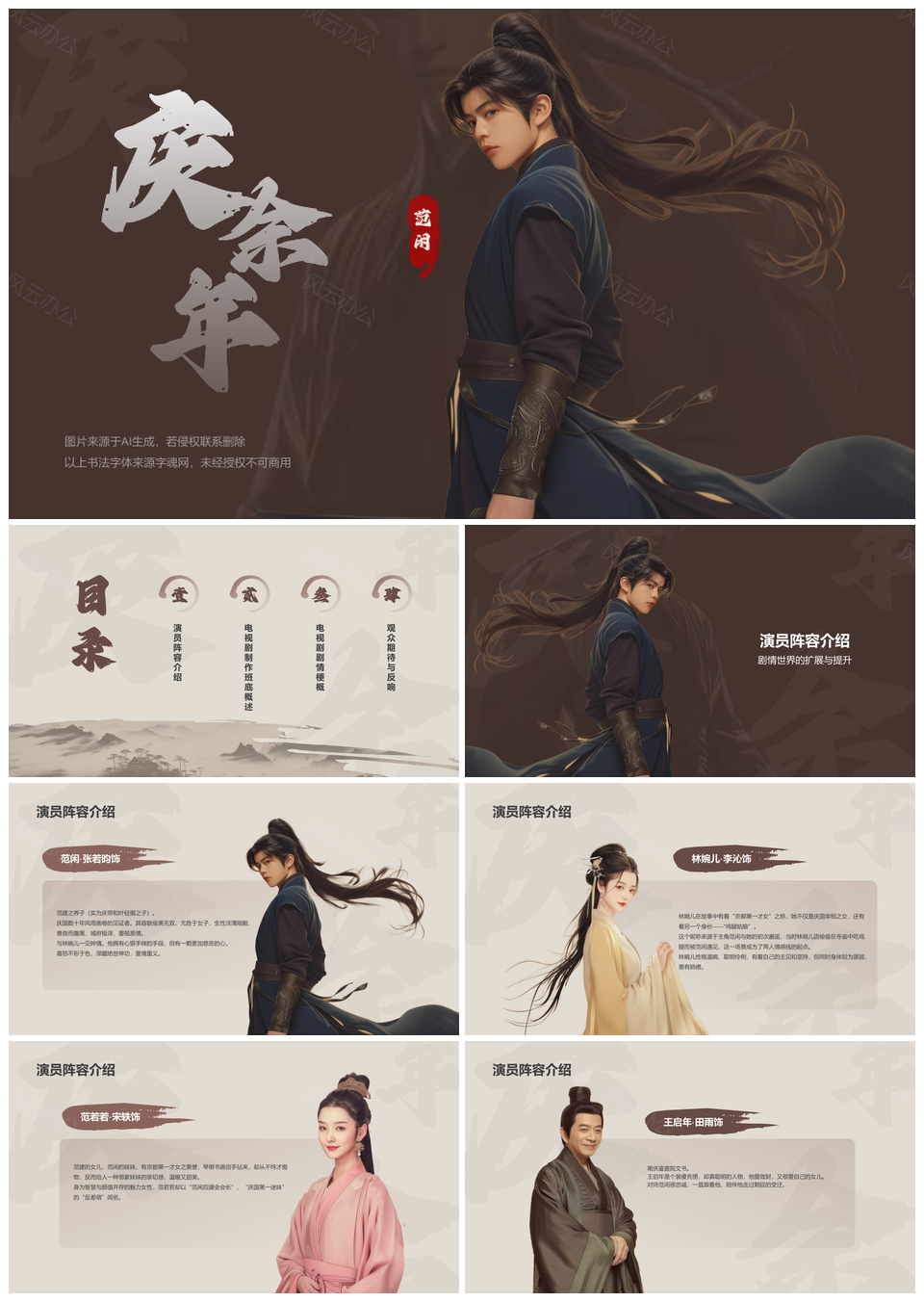 这是一张庆余年2付辛博俞飞鸿实力派演员阵容精彩剧情PPT模板,包含庆余年2、付辛博、俞飞鸿、实力派、演员阵容、精彩剧情等主题内容,也可用作庆余年2付辛博俞飞鸿实力派演员阵容、庆余年2付辛博俞飞鸿演员阵容、付辛博俞飞鸿实力派演员阵容、俞飞鸿实力派演员阵容精彩剧情、庆余年2实力派演员阵容精彩剧情、庆余年2付辛博俞飞鸿实力派、付辛博俞飞鸿实力派演员、庆余年2实力派演员阵容、庆余年2付辛博俞飞鸿、付辛博俞飞鸿实力派、俞飞鸿实力派演员、实力派演员阵容精彩、演员阵容精彩剧情、实力派演员阵容、付辛博俞飞鸿等PPT场景使用。 风云办公提供的庆余年2付辛博俞飞鸿实力派演员阵容精彩剧情PPT模板,下载格式为pptx,一共19页,作品中文字及图均可以修改和编辑,图片更改请在作品中右键图片并更换,文字修改请直接点击文字进行修改。