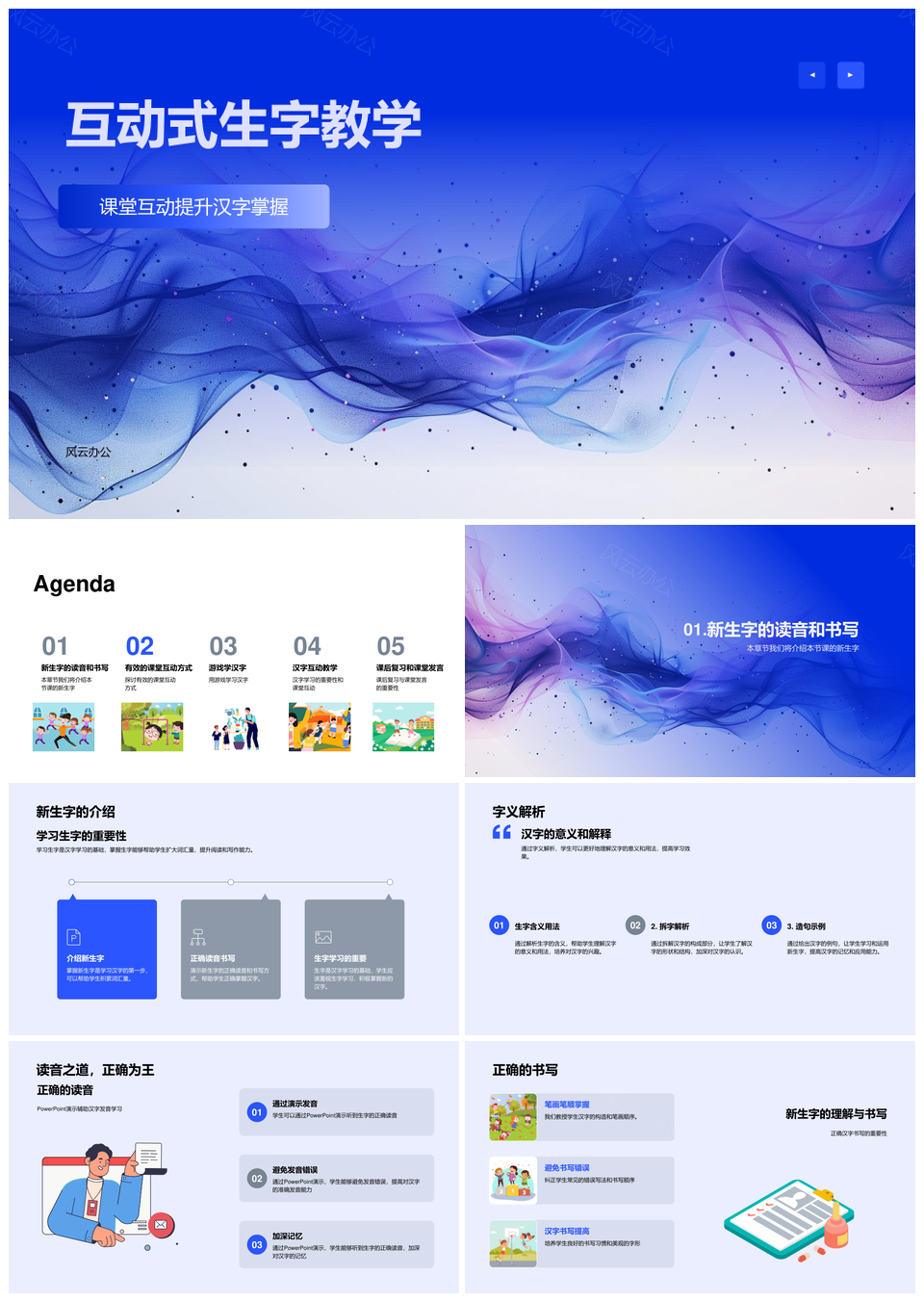 风云办公提供的互动游戏课堂掌握新生字读写笔顺PPT模板,下载格式为pptx,一共33页,作品中文字及图均可以修改和编辑,图片更改请在作品中右键图片并更换,文字修改请直接点击文字进行修改。