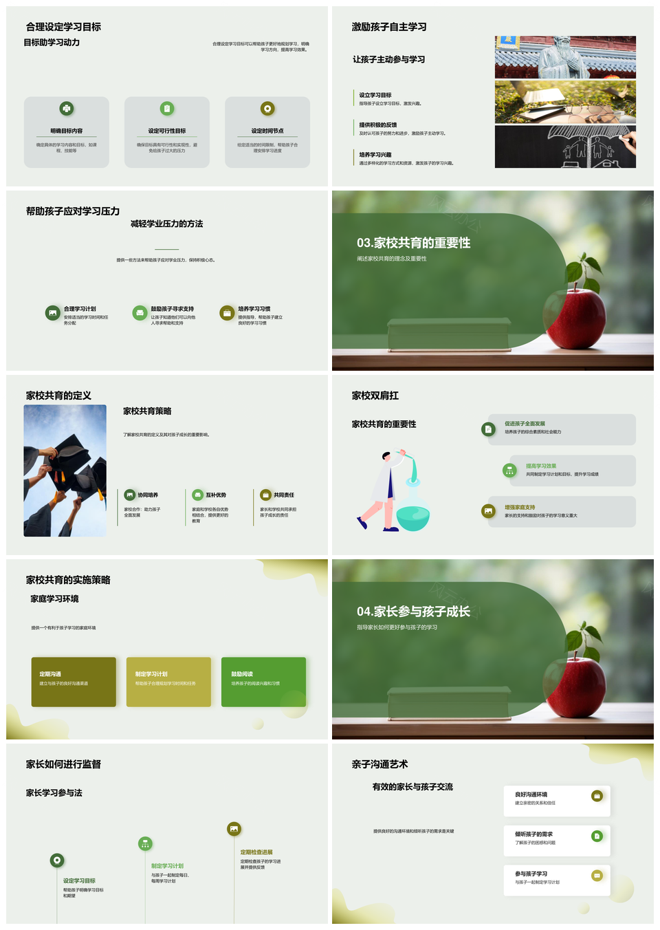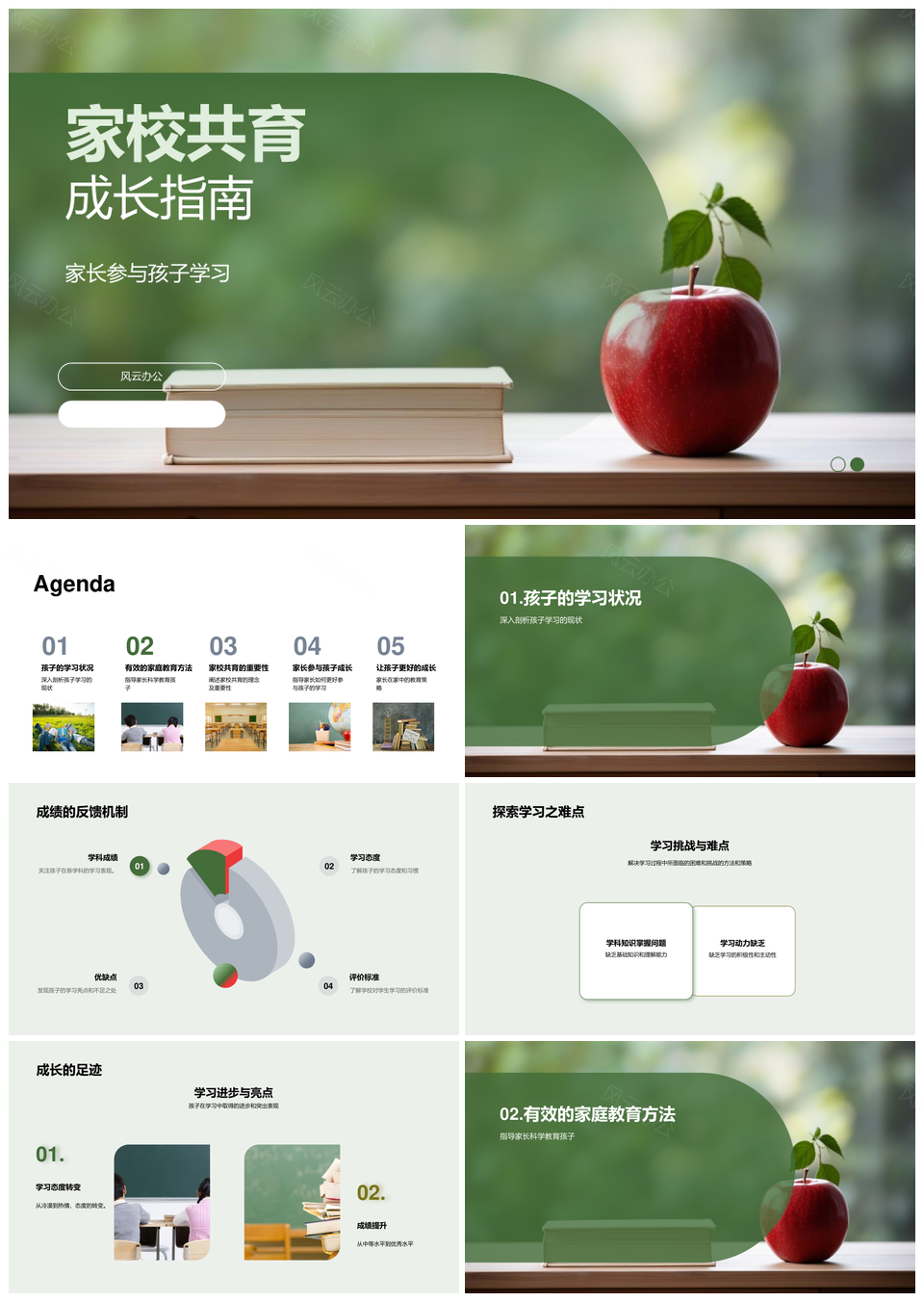 家校共育助力孩子学习进步成长指南PPT模板推荐