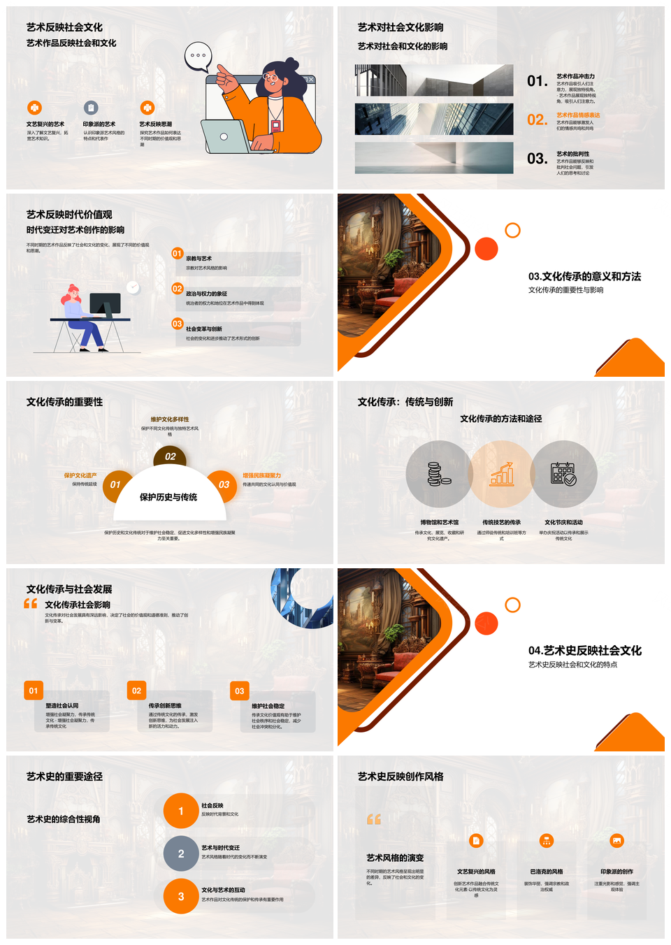 这是一张艺术史学者探文艺复兴巴洛克印象派风格传承PPT模板,包含艺术史学者、探、文艺复兴、巴洛克、印象派、风格、传承等主题内容,也可用作文艺复兴巴洛克印象派风格传承、艺术史学者探文艺复兴巴洛克、文艺复兴巴洛克印象派风格、巴洛克印象派风格传承、艺术史学者文艺复兴巴洛克、艺术史学者文艺复兴、文艺复兴巴洛克印象派、巴洛克印象派风格、印象派风格传承、文艺复兴风格传承、艺术史文艺复兴巴洛克、艺术史巴洛克印象派、学者文艺复兴巴洛克、文艺复兴巴洛克传承、巴洛克风格传承等PPT场景使用。 风云办公提供的艺术史学者探文艺复兴巴洛克印象派风格传承PPT模板,下载格式为pptx,一共23页,作品中文字及图均可以修改和编辑,图片更改请在作品中右键图片并更换,文字修改请直接点击文字进行修改。