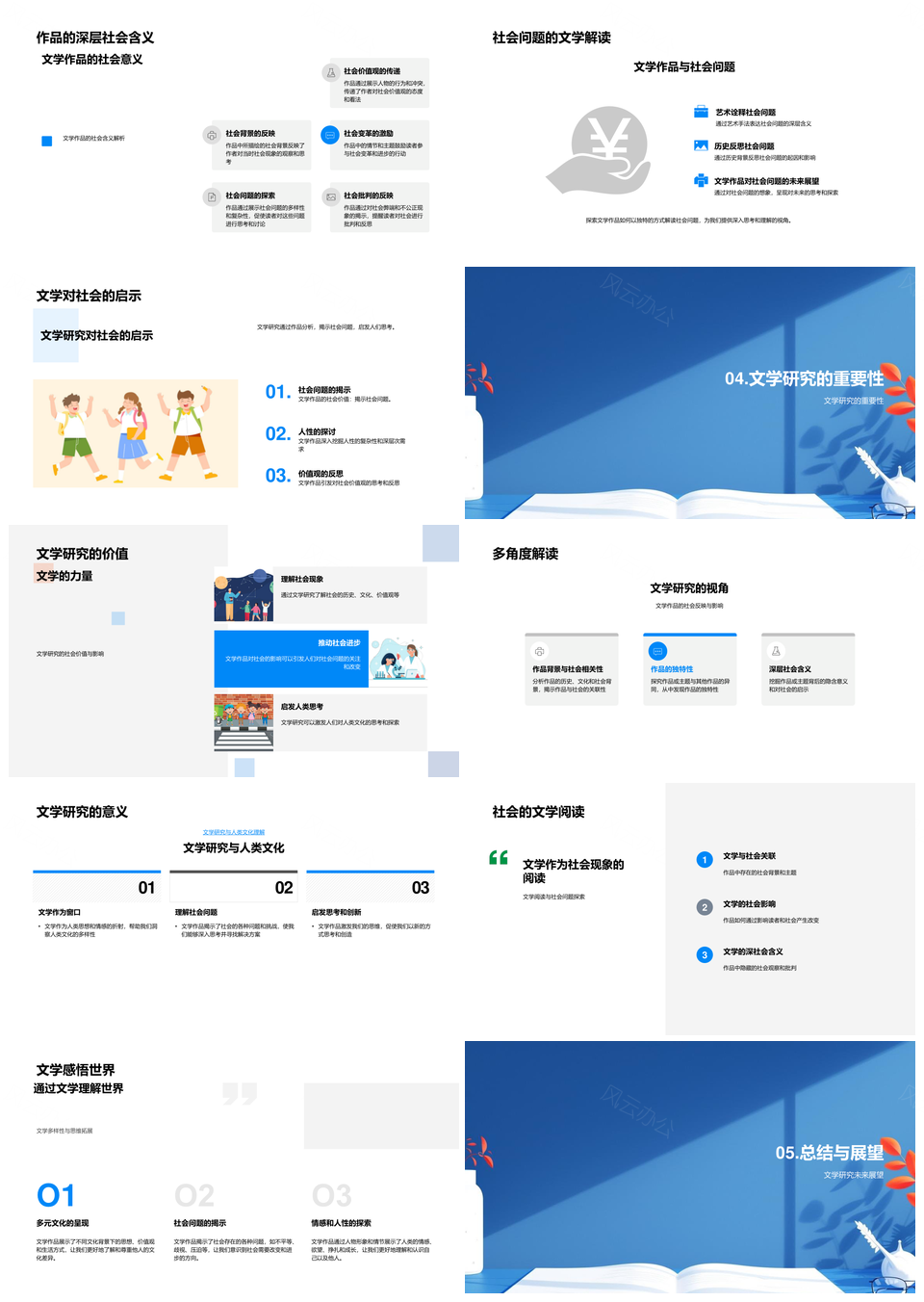 风云办公提供的文学社会实践互动研究社会影响变革PPT模板,下载格式为pptx,一共33页,作品中文字及图均可以修改和编辑,图片更改请在作品中右键图片并更换,文字修改请直接点击文字进行修改。