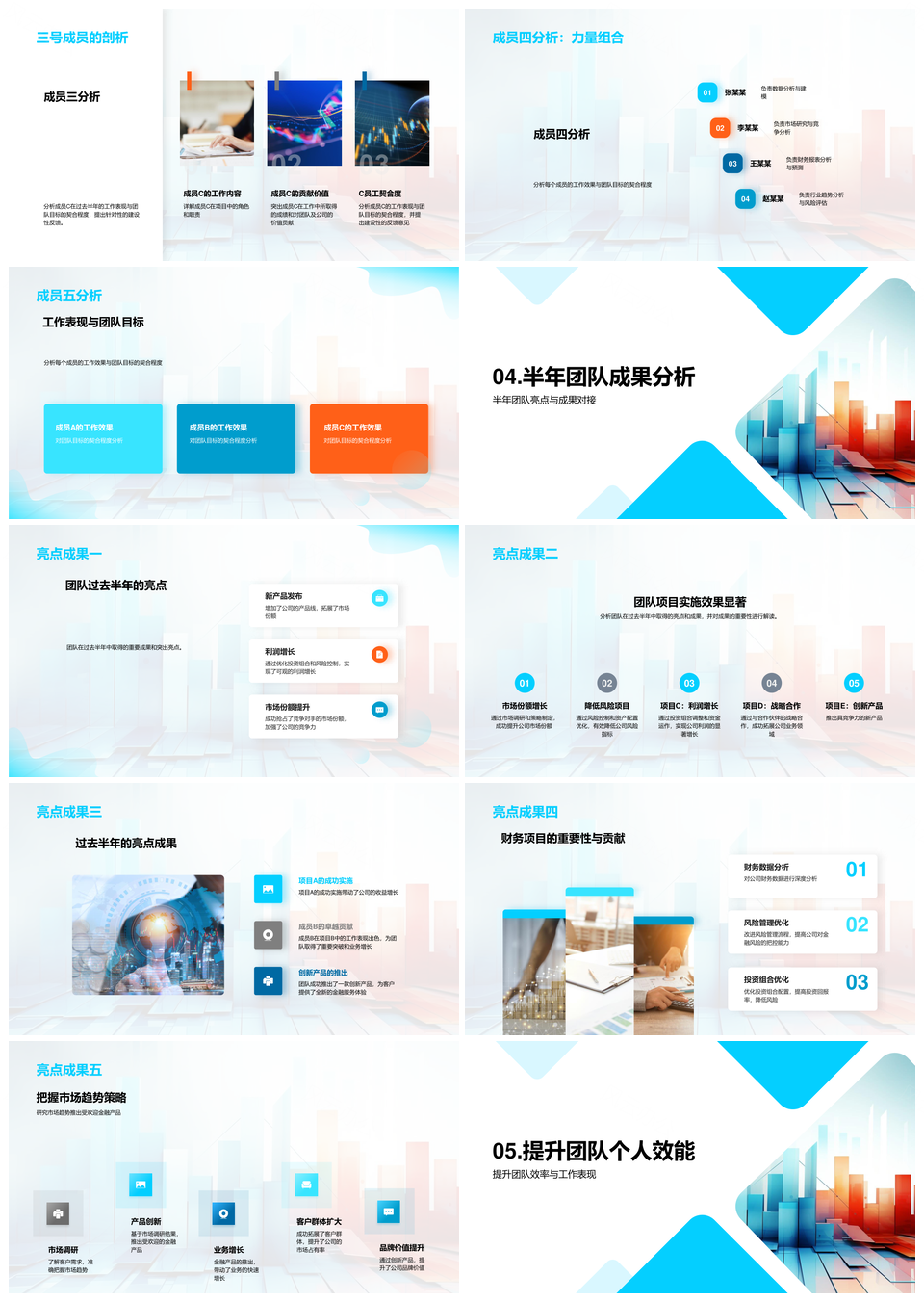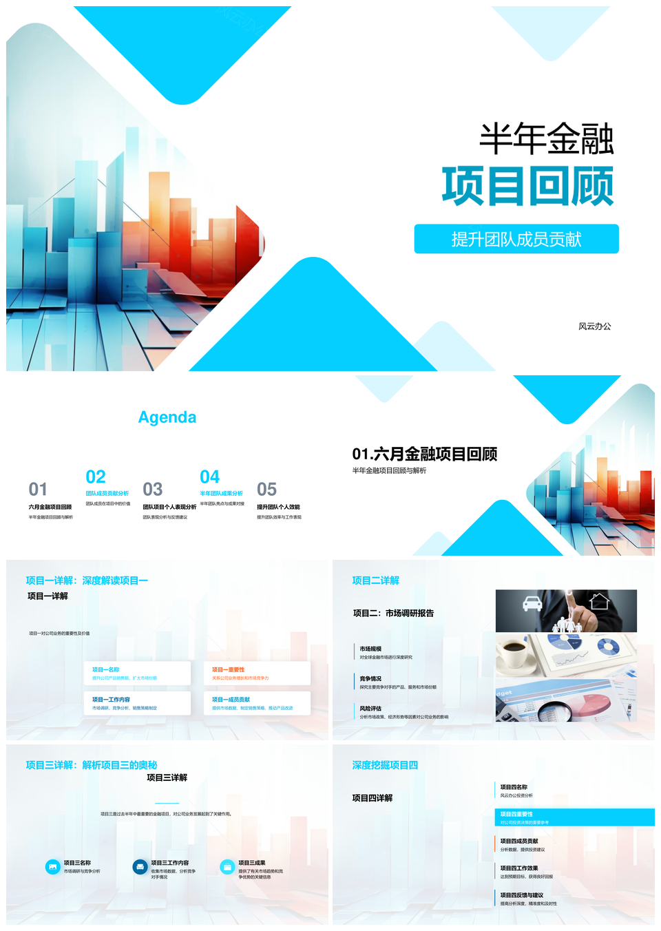 风云办公提供的金融团队半年项目贡献成效分析反馈PPT模板,下载格式为pptx,一共33页,作品中文字及图均可以修改和编辑,图片更改请在作品中右键图片并更换,文字修改请直接点击文字进行修改。