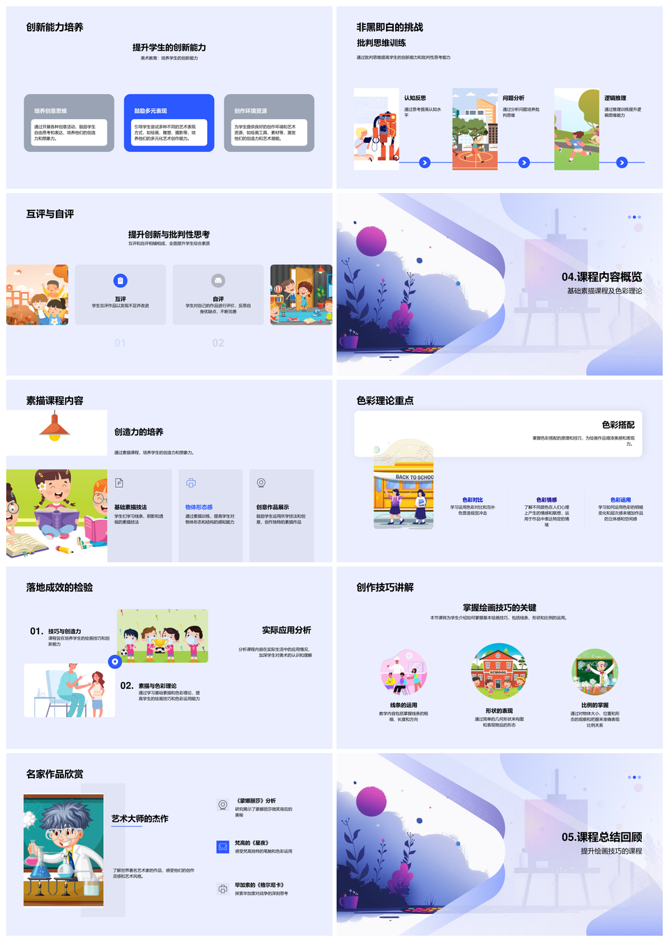 2025美术课程设计教学目标方法评价实践创新批判思考PPT模板推荐