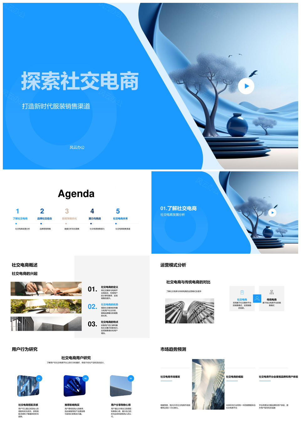 风云办公提供的社交电商服装用户行为与运营模式分析PPT模板,下载格式为pptx,一共33页,作品中文字及图均可以修改和编辑,图片更改请在作品中右键图片并更换,文字修改请直接点击文字进行修改。