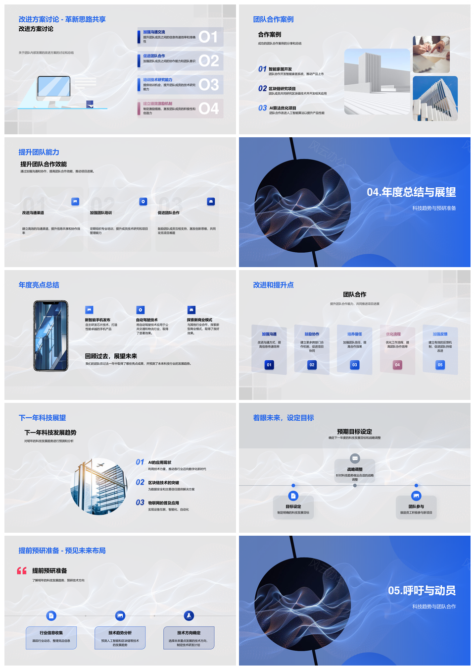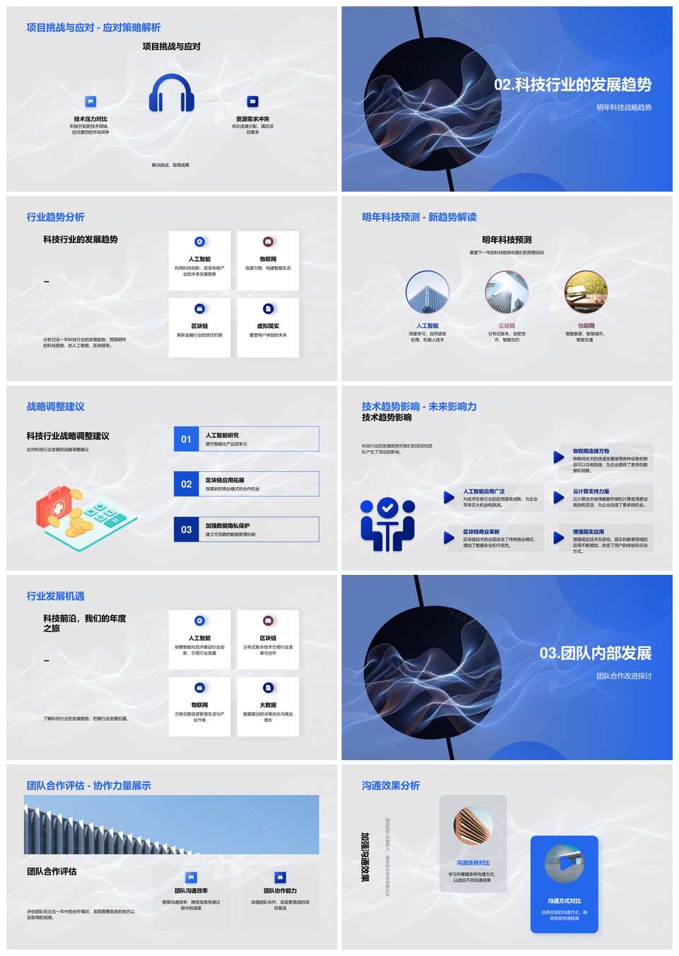 这是一张科技创新年度总结团队展望人工智能趋势PPT模板,包含科技创新、年度总结、团队、展望、人工智能、趋势等主题内容,也可用作科技创新年度总结、年度总结团队展望、团队展望人工智能趋势、科技创新团队展望、创新年度总结团队、年度总结团队展望人工智能、总结团队展望人工智能趋势、科技创新人工智能趋势、科技创新年度团队、年度团队展望人工智能、团队人工智能趋势展望、科技创新年度趋势、年度团队展望趋势、团队展望趋势人工智能、人工智能趋势年度总结等PPT场景使用。 风云办公提供的科技创新年度总结团队展望人工智能趋势PPT模板,下载格式为pptx,一共33页,作品中文字及图均可以修改和编辑,图片更改请在作品中右键图片并更换,文字修改请直接点击文字进行修改。