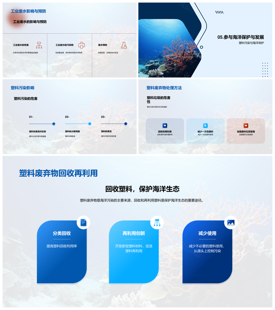 这是一张海洋污染治理与生态保护促进可持续发展PPT模板,包含海洋污染治理、生态保护、可持续发展等主题内容,也可用作海洋污染治理生态保护、污染治理生态保护促进、治理生态保护促进可持续、生态保护促进可持续发展、海洋污染治理生态、污染治理生态保护、治理生态保护促进、生态保护促进可持续、保护促进可持续发展、海洋污染治理、污染治理生态、治理生态保护、生态保护促进、保护促进可持续、促进可持续发展等PPT场景使用。 风云办公提供的海洋污染治理与生态保护促进可持续发展PPT模板,下载格式为pptx,一共23页,作品中文字及图均可以修改和编辑,图片更改请在作品中右键图片并更换,文字修改请直接点击文字进行修改。