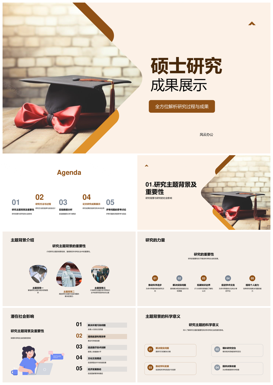 硕士研究主题背景方法实验数据成果展示PPT模板推荐
