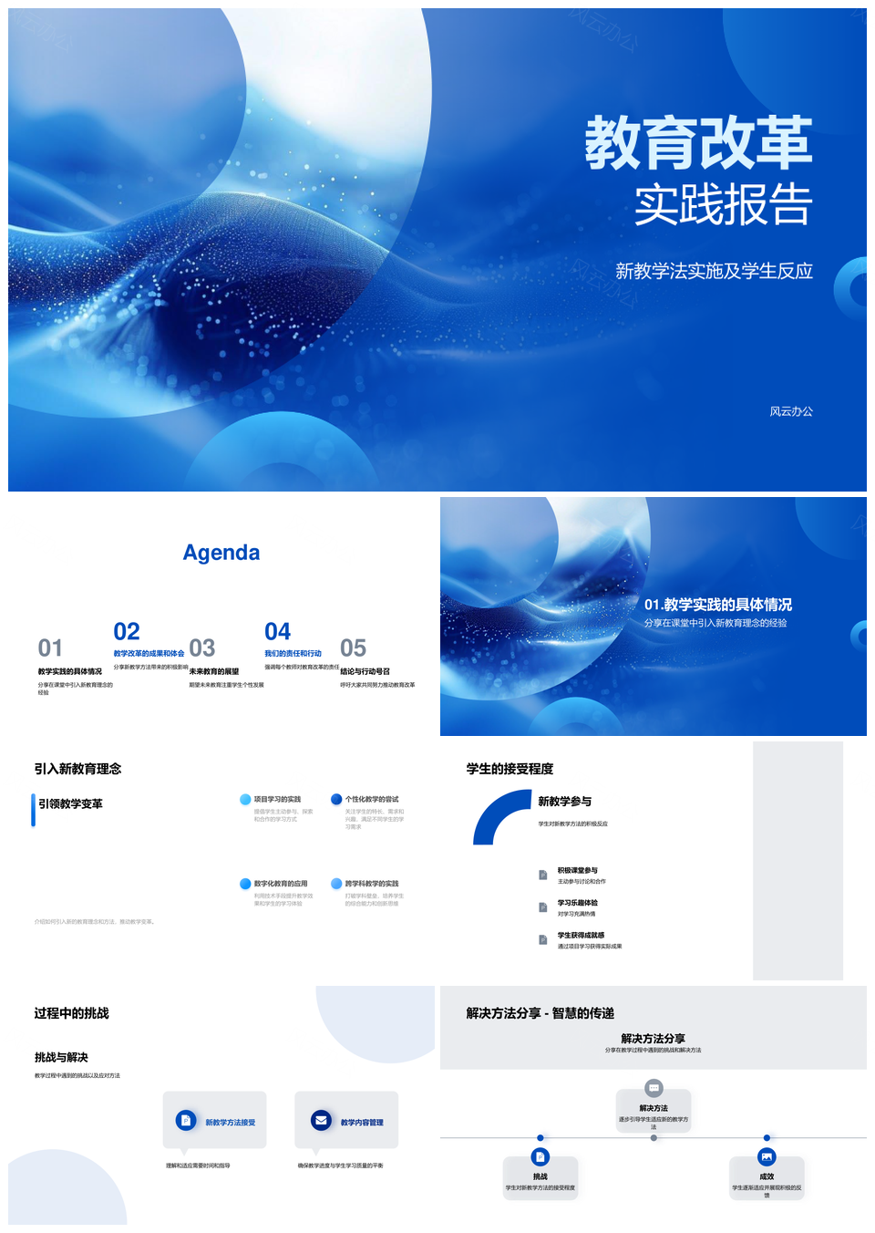 风云办公提供的教育改革新教学法师生参与实践报告PPT模板,下载格式为pptx,一共28页,作品中文字及图均可以修改和编辑,图片更改请在作品中右键图片并更换,文字修改请直接点击文字进行修改。