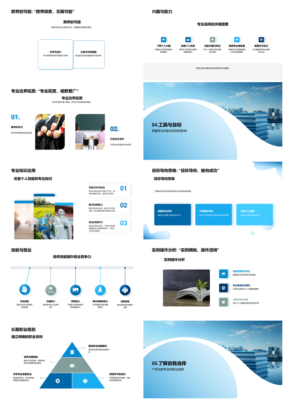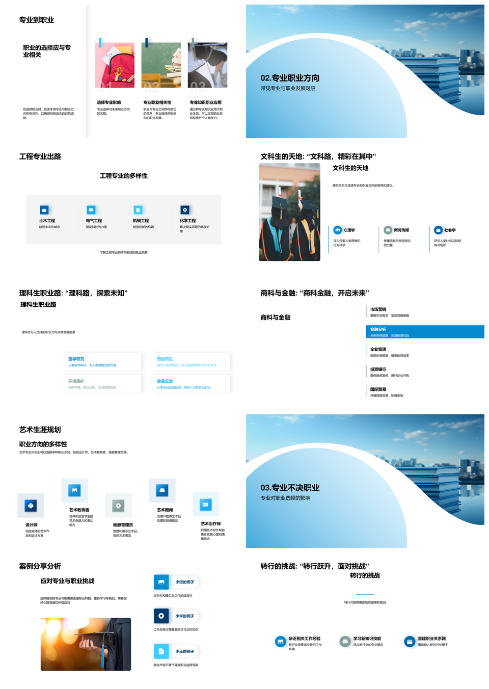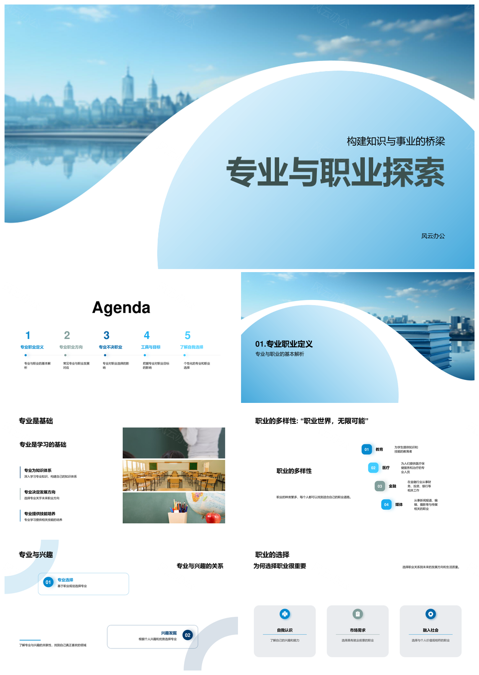 风云办公提供的专业职业文理工程多元方向探索PPT模板,下载格式为pptx,一共33页,作品中文字及图均可以修改和编辑,图片更改请在作品中右键图片并更换,文字修改请直接点击文字进行修改。