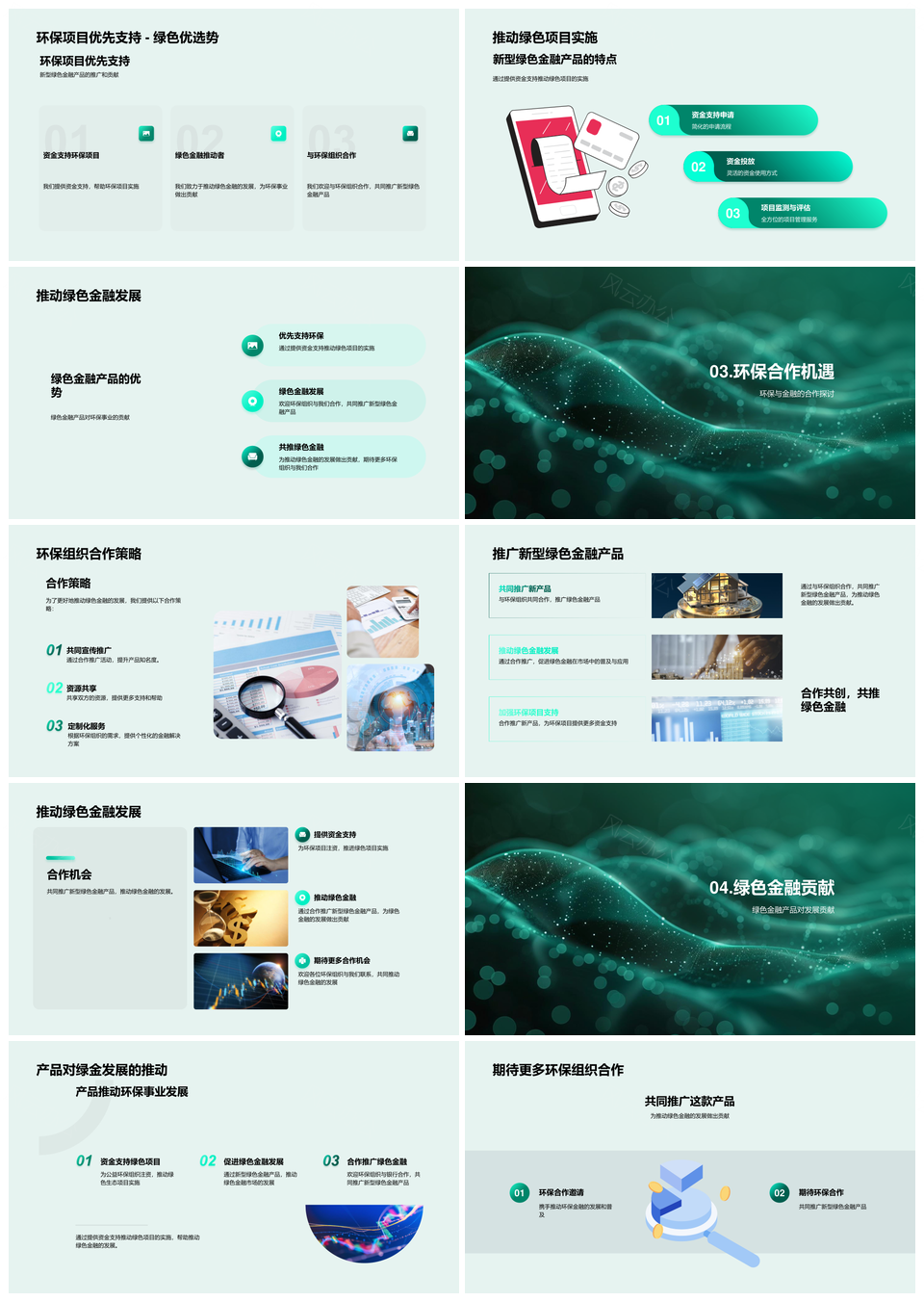 这是一张绿色金融环保新品助力项目资金发布PPT模板,包含绿色金融、环保新品、助力、项目资金、发布等主题内容,也可用作绿色金融环保新品、环保新品助力项目、助力项目资金发布、绿色金融环保、金融环保新品、环保新品助力、新品助力项目、助力项目资金、项目资金发布、绿色金融、金融环保、环保新品、新品助力、助力项目、项目资金等PPT场景使用。
