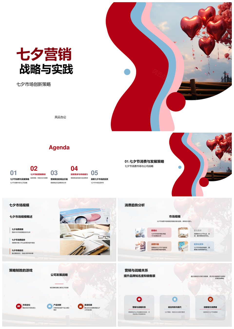 风云办公提供的七夕营销战略实践与市场创新PPT模板,下载格式为pptx,一共27页,作品中文字及图均可以修改和编辑,图片更改请在作品中右键图片并更换,文字修改请直接点击文字进行修改。