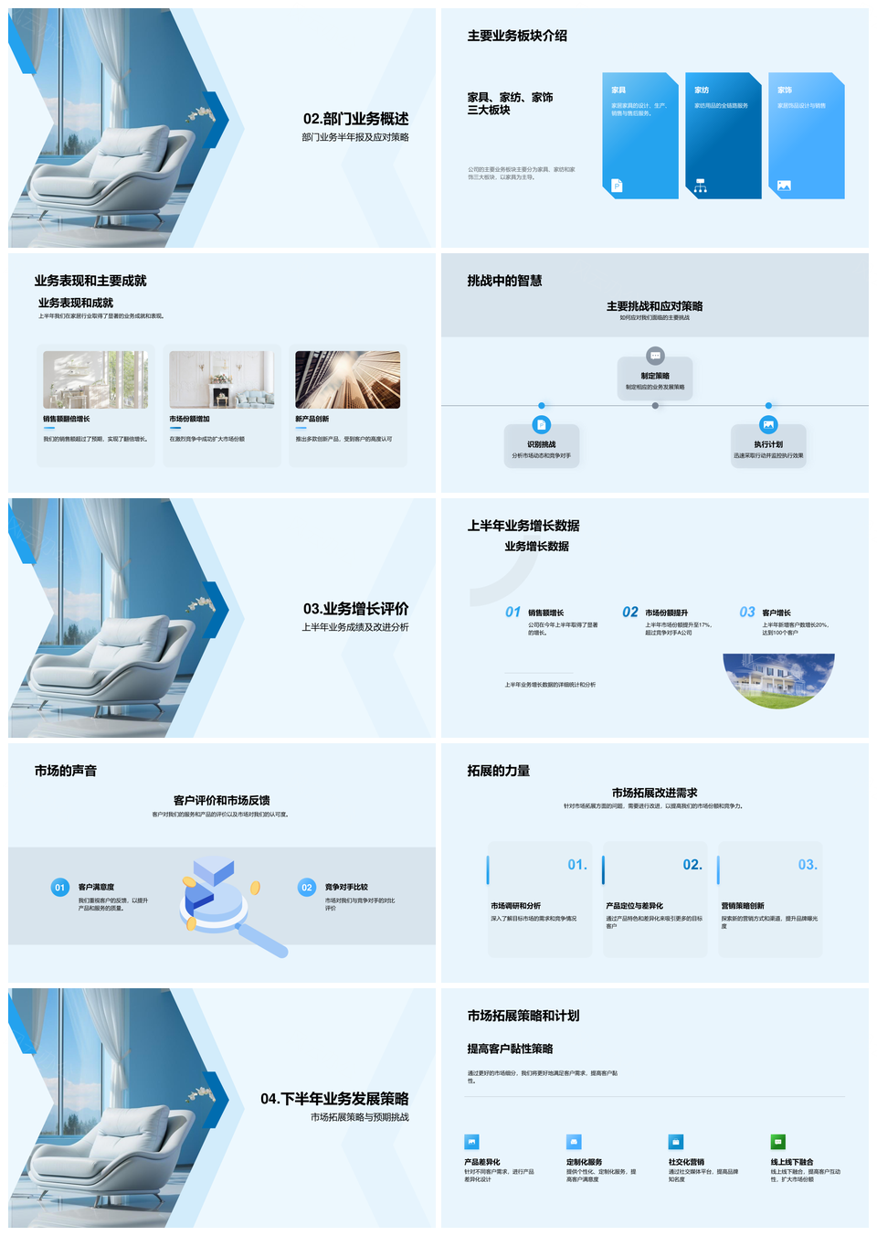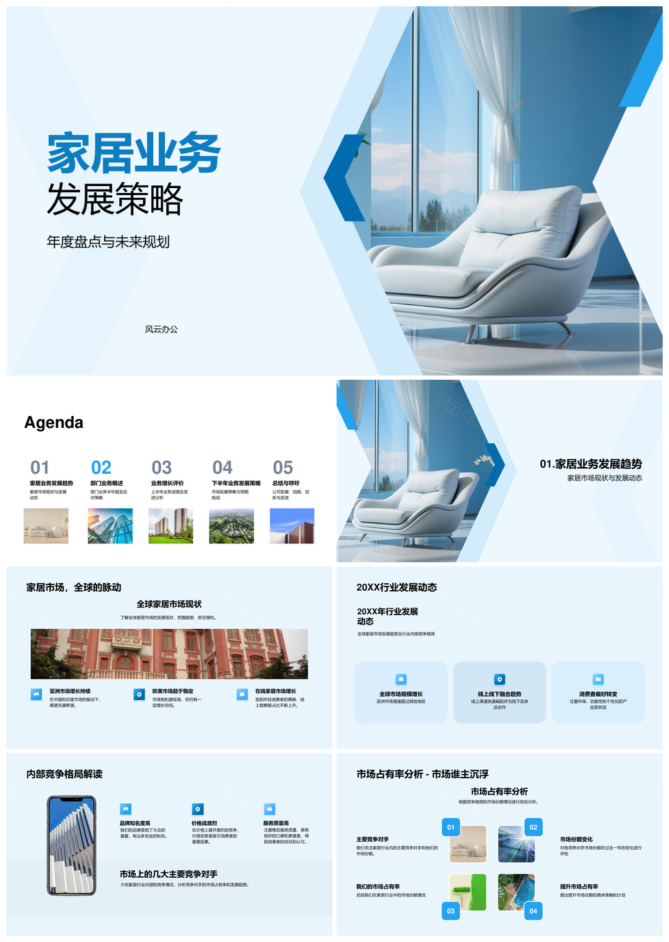 风云办公提供的全球家居市场占有率与业务增长策略PPT模板,下载格式为pptx,一共24页,作品中文字及图均可以修改和编辑,图片更改请在作品中右键图片并更换,文字修改请直接点击文字进行修改。