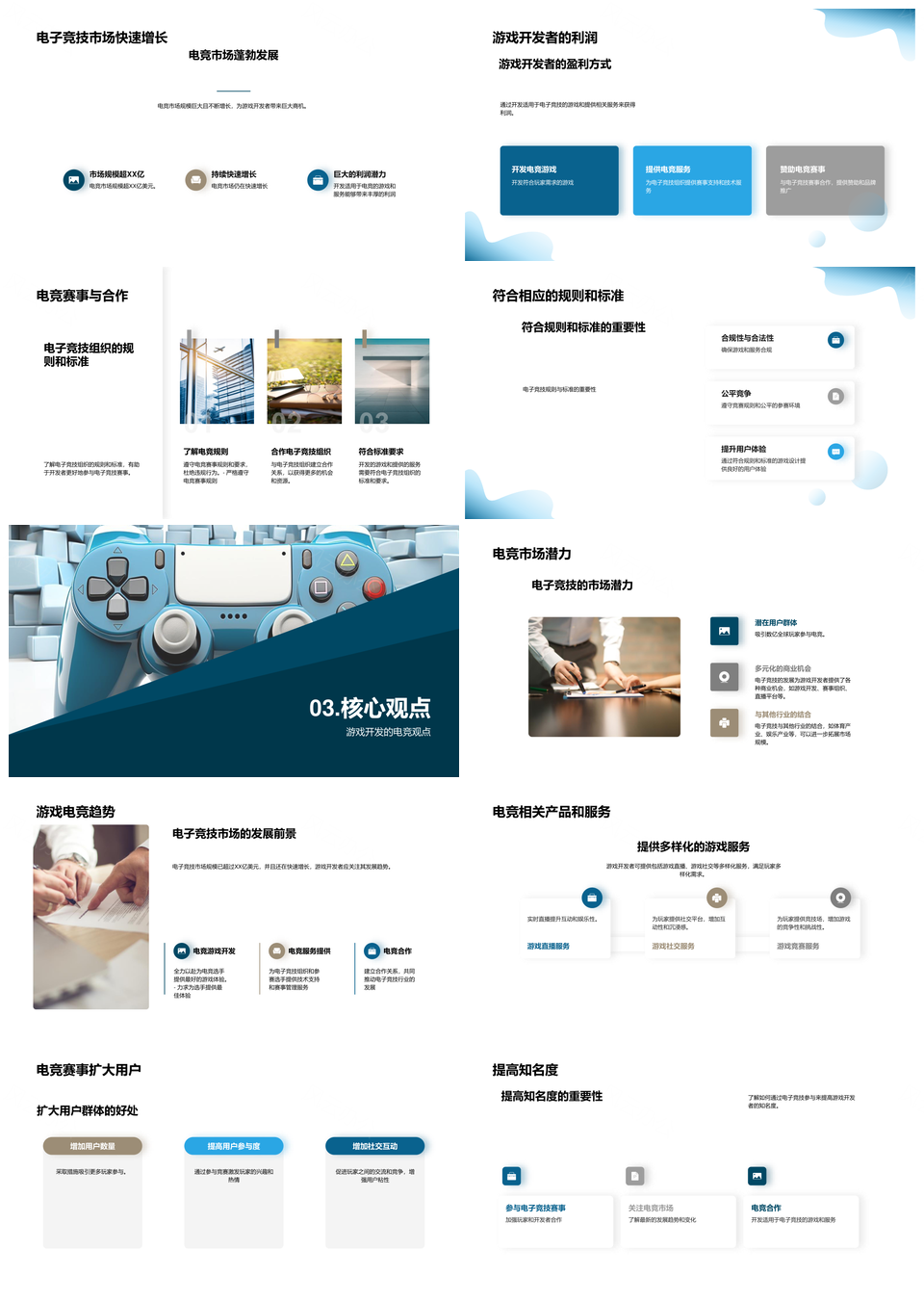 这是一张游戏娱乐行业电竞市场规模增长趋势与赛事参与者分析PPT模板,包含游戏娱乐、行业、电竞、市场、规模、增长、趋势、赛事、参与者、分析等主题内容,也可用作游戏娱乐行业电竞市场、电竞市场规模增长趋势、市场规模增长趋势分析、赛事参与者分析趋势、游戏娱乐行业市场规模、电竞市场增长趋势分析、电竞行业市场规模增长、游戏娱乐电竞市场增长、赛事参与者趋势分析、市场规模增长分析、游戏娱乐行业电竞、电竞市场规模增长、市场增长趋势分析、赛事参与者分析、电竞市场增长趋势等PPT场景使用。 风云办公提供的游戏娱乐行业电竞市场规模增长趋势与赛事参与者分析PPT模板,下载格式为pptx,一共23页,作品中文字及图均可以修改和编辑,图片更改请在作品中右键图片并更换,文字修改请直接点击文字进行修改。