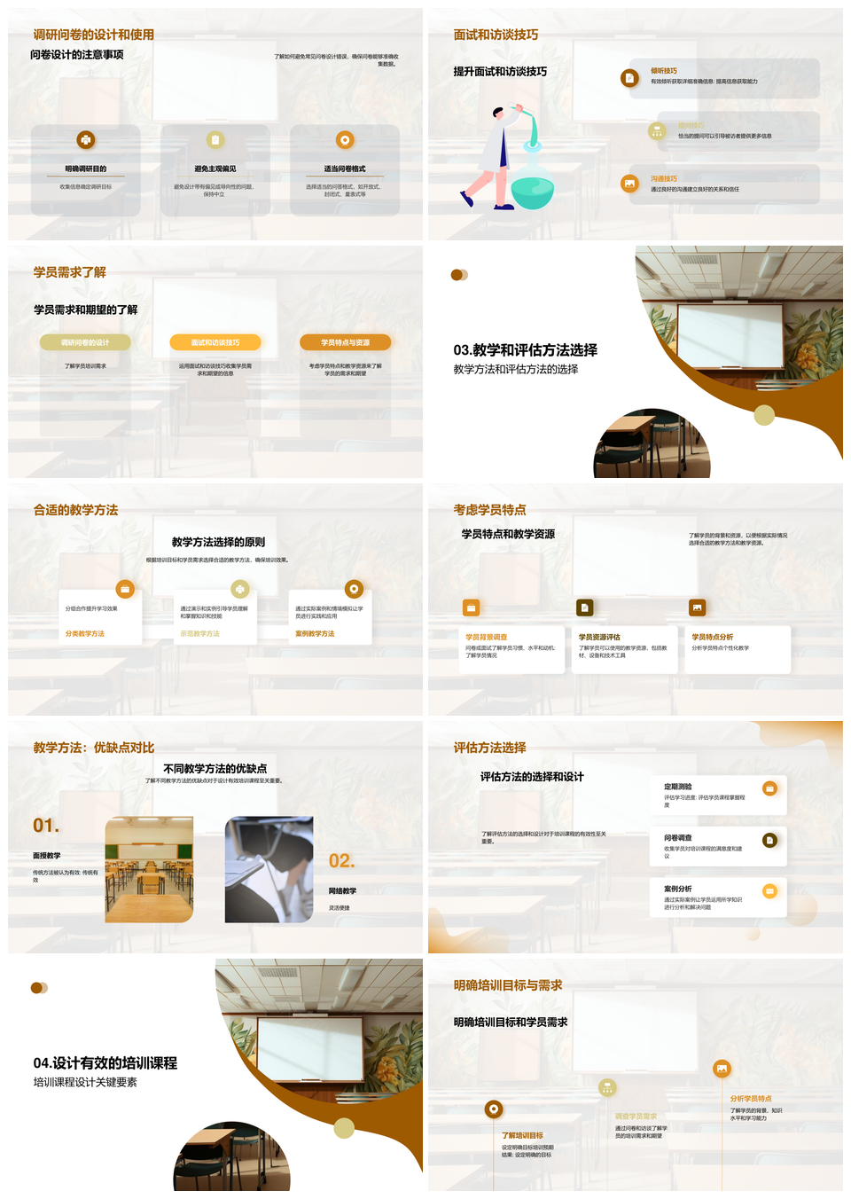这是一张培训师设计培训课程需求分析教学评估手册PPT模板,包含培训师、设计、培训课程、需求、分析、教学、评估、手册等主题内容,也可用作培训师设计培训课程需求分析教学评估手册、培训师设计培训课程需求分析、设计培训课程需求分析教学评估、培训课程需求分析教学评估手册、培训师设计培训课程、设计培训课程需求分析、培训课程需求分析教学评估、需求分析教学评估手册、培训师设计、设计培训课程、培训课程需求分析、需求分析教学评估、教学评估手册、设计需求分析、培训课程教学评估等PPT场景使用。 风云办公提供的培训师设计培训课程需求分析教学评估手册PPT模板,下载格式为pptx,一共24页,作品中文字及图均可以修改和编辑,图片更改请在作品中右键图片并更换,文字修改请直接点击文字进行修改。