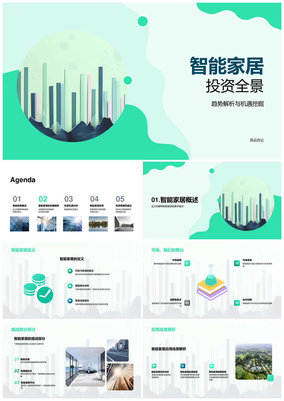 风云办公提供的智能家居投资全景全屋定制新兴产品PPT模板,下载格式为pptx,一共28页,作品中文字及图均可以修改和编辑,图片更改请在作品中右键图片并更换,文字修改请直接点击文字进行修改。
