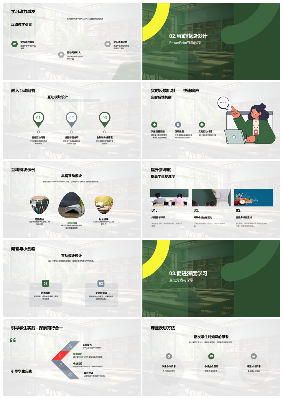互动教学模块优化反馈提升动机参与深度学习PPT模板推荐