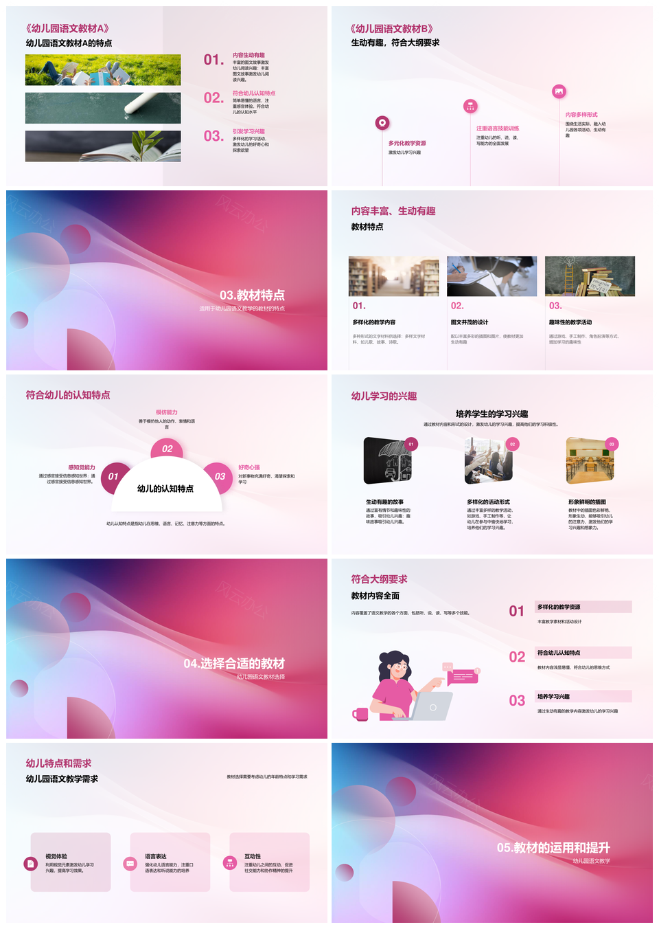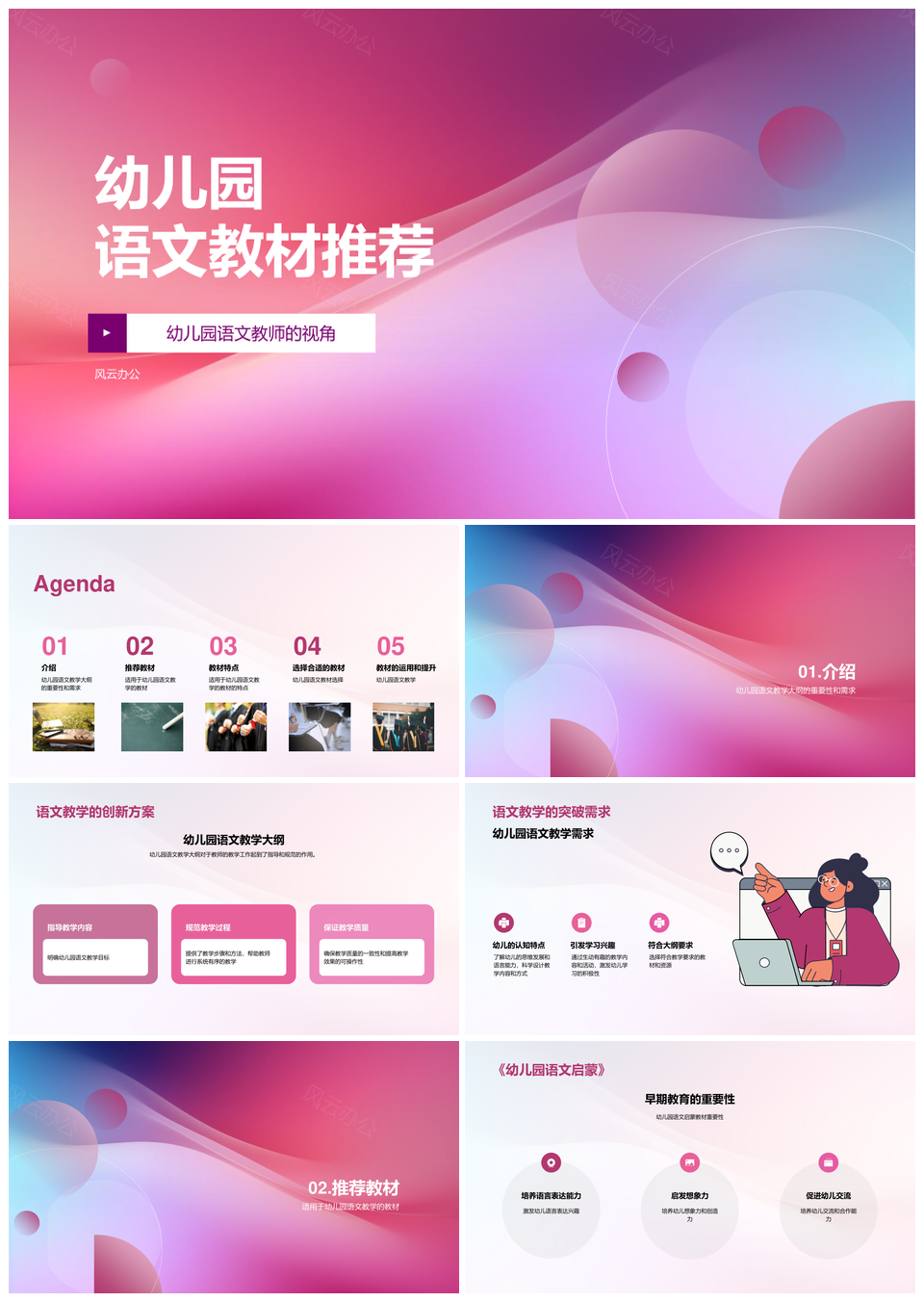这是一张幼儿园语文教材推荐PPT模板,包含幼儿园、语文教材、推荐等主题内容,也可用作幼儿园语文教材推荐、推荐幼儿园语文教材、推荐幼儿园教材、推荐语文教材、推荐幼儿园语文、幼儿园语文教材、幼儿园教材推荐、语文教材推荐、幼儿园语文、幼儿园教材、语文教材、教材推荐、推荐教材、推荐语文、推荐幼儿园等PPT场景使用。 风云办公提供的幼儿园语文教材推荐PPT模板,下载格式为pptx,一共21页,作品中文字及图均可以修改和编辑,图片更改请在作品中右键图片并更换,文字修改请直接点击文字进行修改。