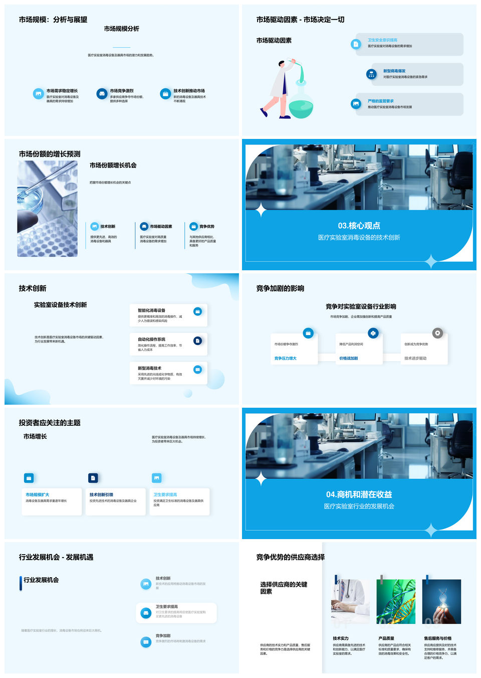 风云办公提供的生物医疗消毒设备器具市场前景分析PPT模板,下载格式为pptx,一共23页,作品中文字及图均可以修改和编辑,图片更改请在作品中右键图片并更换,文字修改请直接点击文字进行修改。