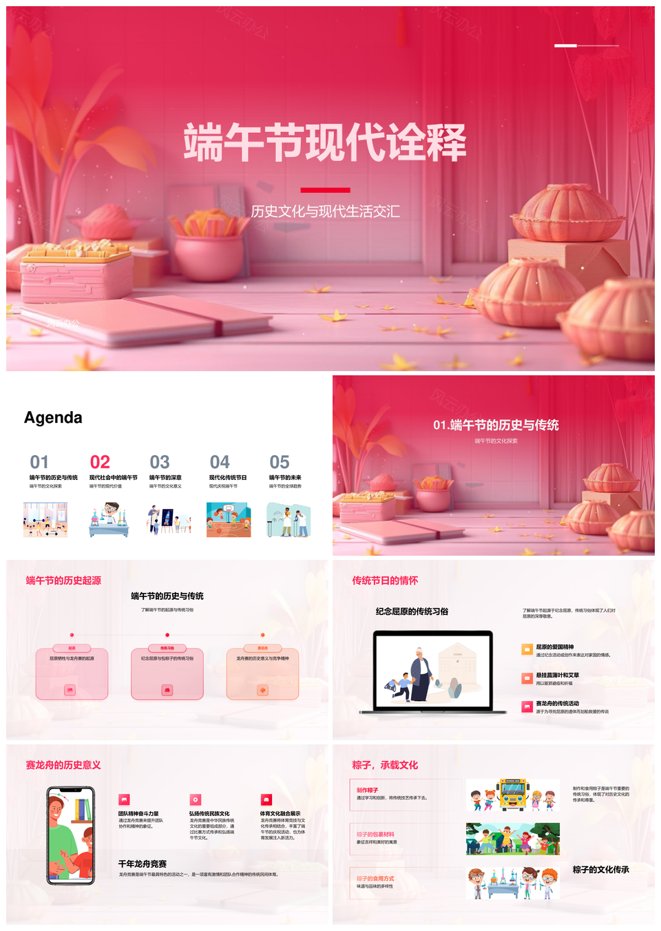 风云办公提供的端午节历史文化现代传承屈原龙舟粽俗PPT模板,下载格式为pptx,一共26页,作品中文字及图均可以修改和编辑,图片更改请在作品中右键图片并更换,文字修改请直接点击文字进行修改。