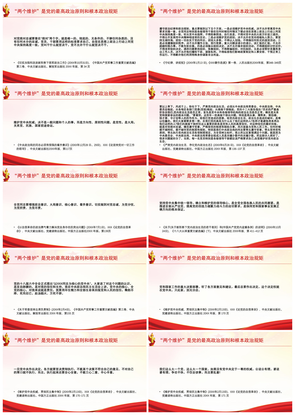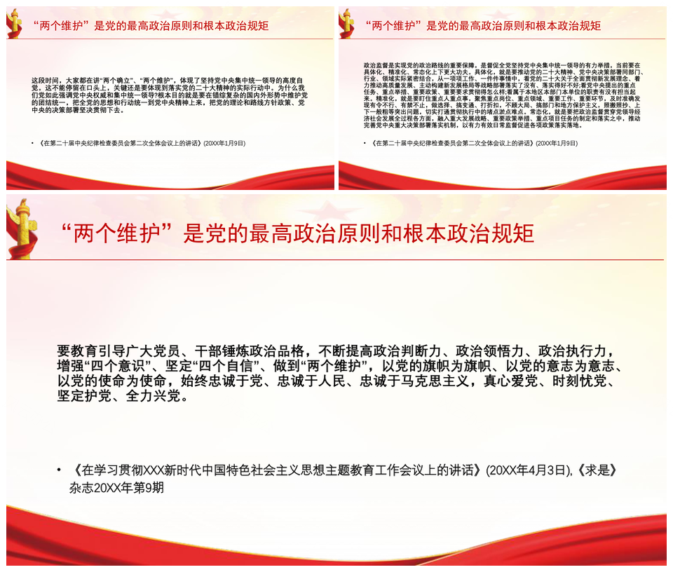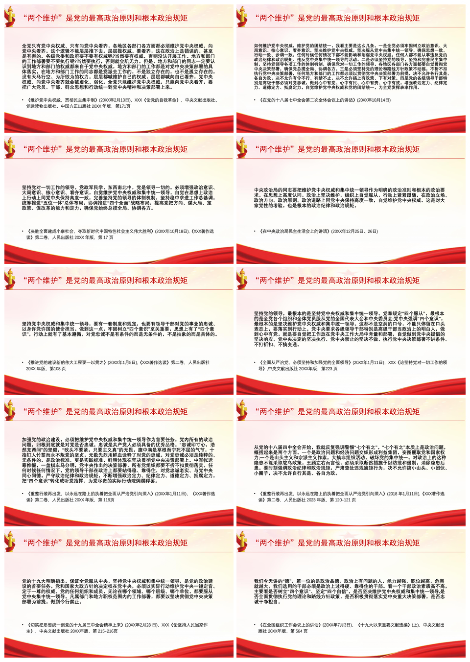 这是一张2025两个维护政治原则政治规矩党课PPT模板,包含2025、两个维护、政治原则、政治规矩、党课等主题内容,也可用作2025两个维护政治原则政治规矩、两个维护政治原则政治规矩党课、2025两个维护政治原则、两个维护政治原则政治规矩、政治原则政治规矩党课、2025两个维护、两个维护政治原则、政治原则政治规矩、政治规矩党课、两个维护政治规矩、两个维护党课、政治原则党课、2025政治原则、2025政治规矩、2025党课等PPT场景使用。 风云办公提供的2025两个维护政治原则政治规矩党课PPT模板,下载格式为pptx,一共51页,作品中文字及图均可以修改和编辑,图片更改请在作品中右键图片并更换,文字修改请直接点击文字进行修改。