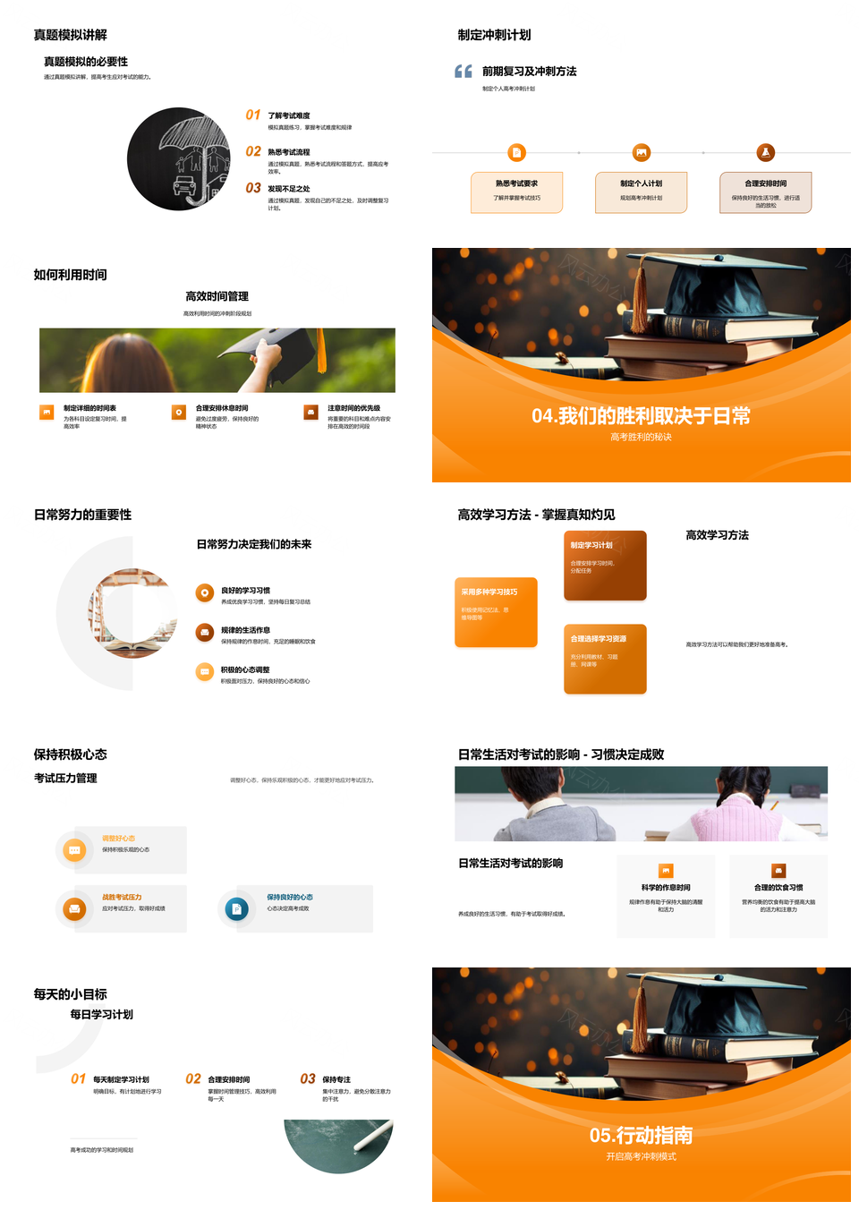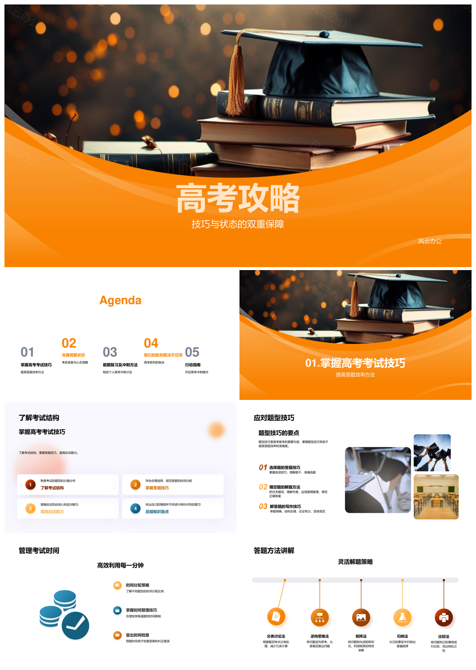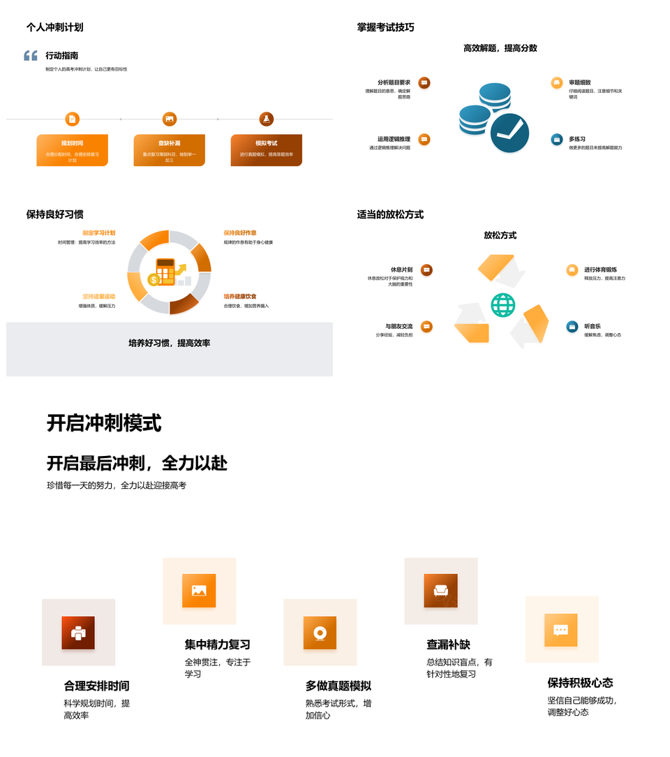 风云办公提供的高考冲刺攻略调整状态掌握技巧PPT模板,下载格式为pptx,一共33页,作品中文字及图均可以修改和编辑,图片更改请在作品中右键图片并更换,文字修改请直接点击文字进行修改。
