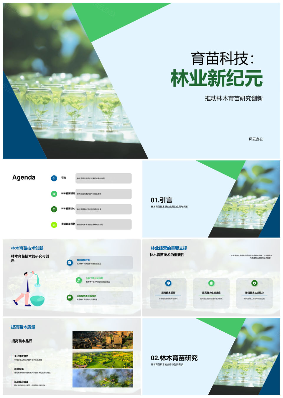 风云办公提供的林木育苗技术创新促林业提质增效PPT模板,下载格式为pptx,一共19页,作品中文字及图均可以修改和编辑,图片更改请在作品中右键图片并更换,文字修改请直接点击文字进行修改。