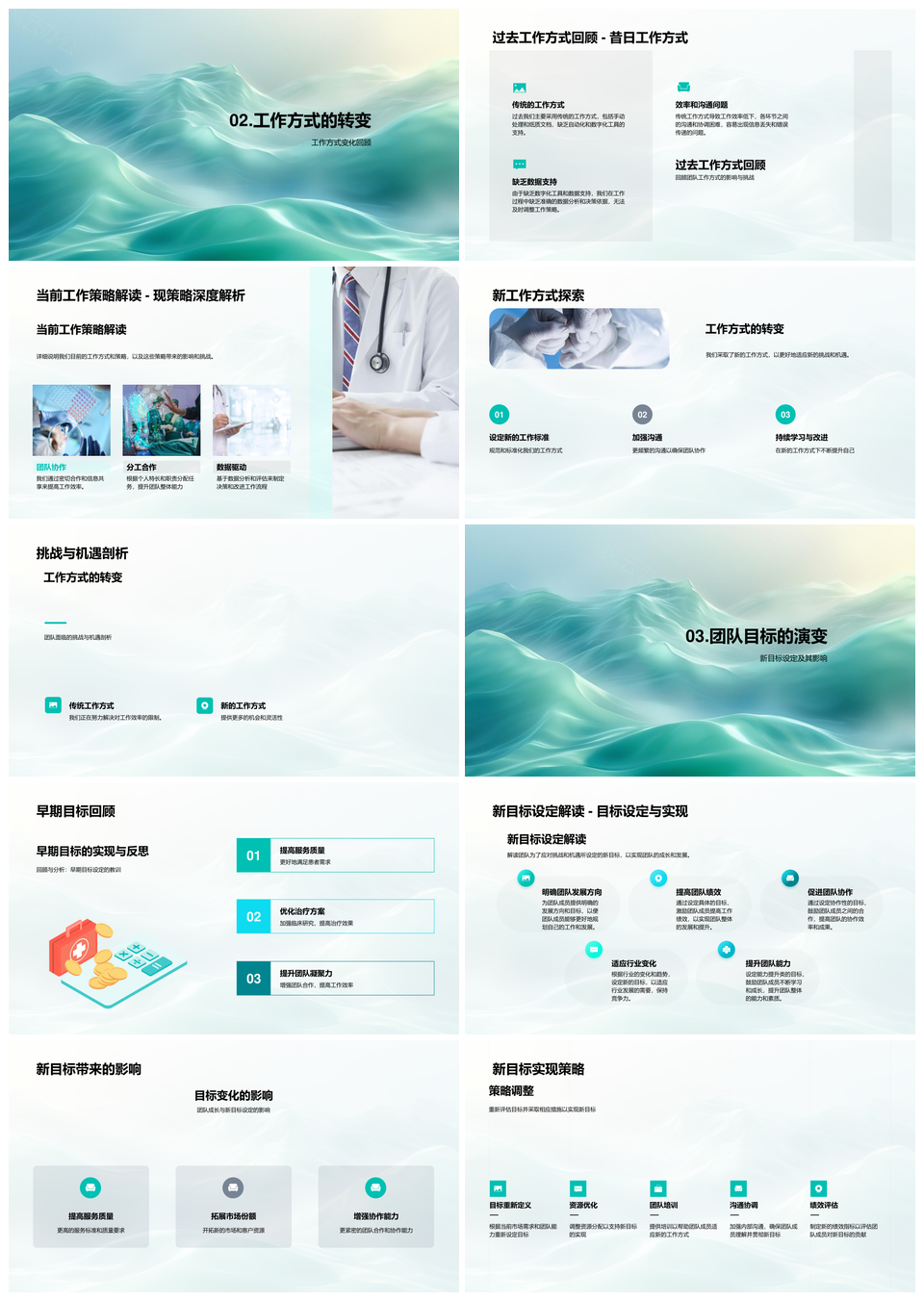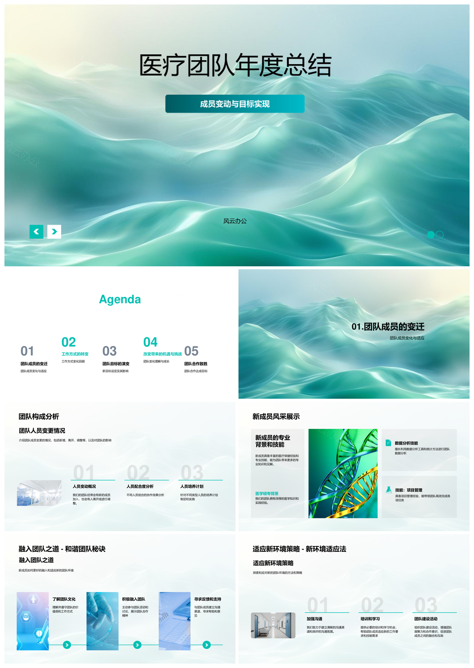 医疗团队年度总结人事目标成果协作成长PPT模板推荐