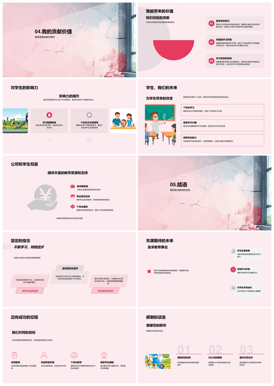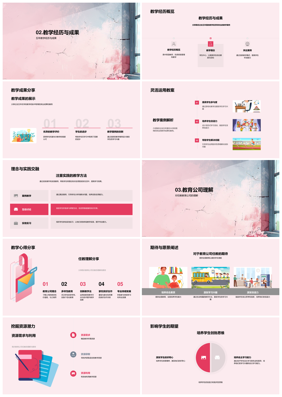 教育求职教学经验成果案例理念背景PPT模板推荐