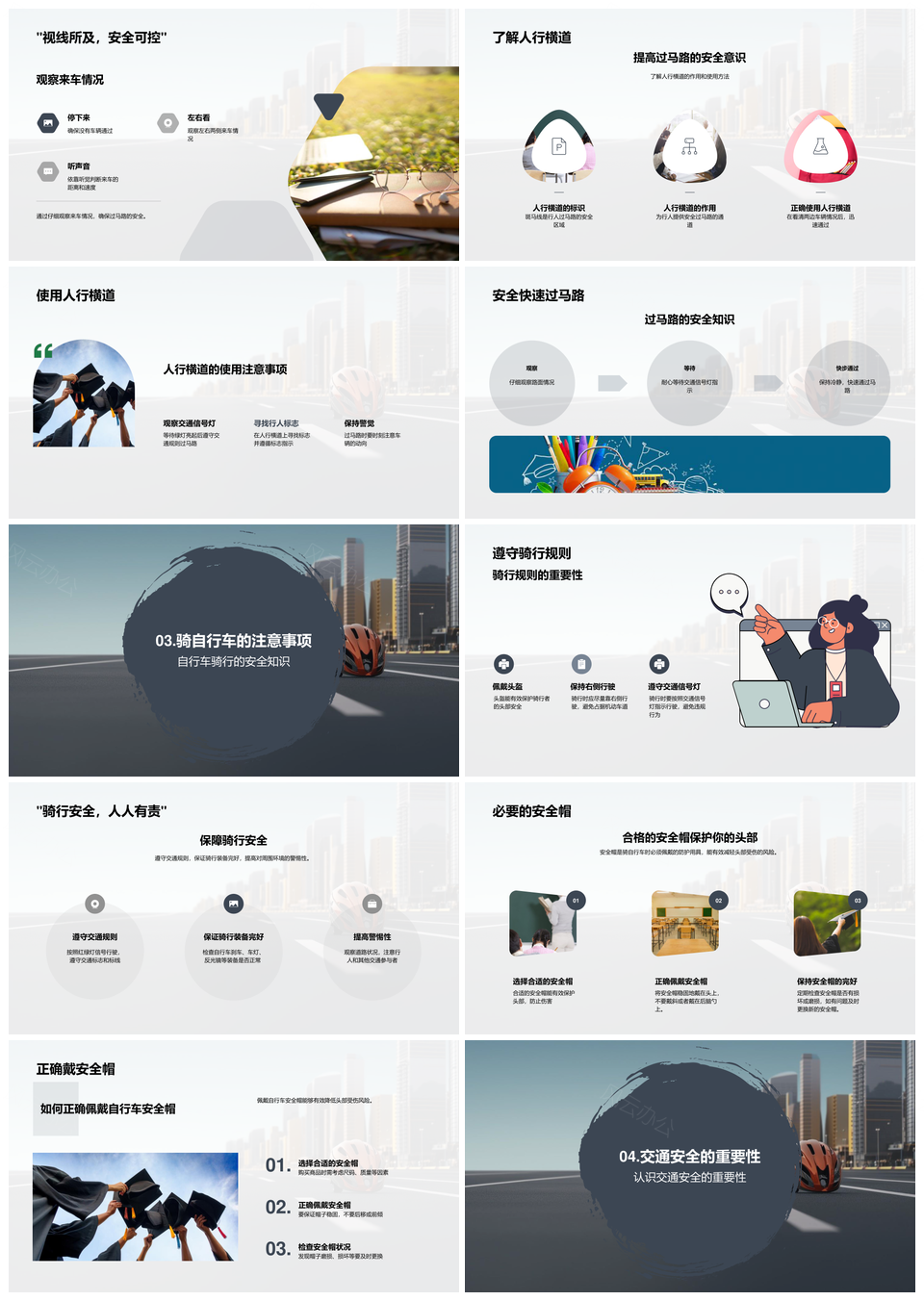 这是一张安全行驶交通指南信号灯人行横道骑自行车PPT模板,包含安全行驶、交通指南、信号灯、人行横道、骑自行车等主题内容,也可用作安全行驶交通指南、安全行驶交通信号灯、安全行驶指南人行横道、安全交通指南信号灯、行驶交通指南信号灯、指南信号灯人行横道、信号灯人行横道骑自行车、人行横道骑自行车安全、骑自行车安全行驶、安全行驶交通、安全行驶指南、行驶交通指南、交通指南信号灯、信号灯人行横道、人行横道骑自行车等PPT场景使用。 风云办公提供的安全行驶交通指南信号灯人行横道骑自行车PPT模板,下载格式为pptx,一共26页,作品中文字及图均可以修改和编辑,图片更改请在作品中右键图片并更换,文字修改请直接点击文字进行修改。