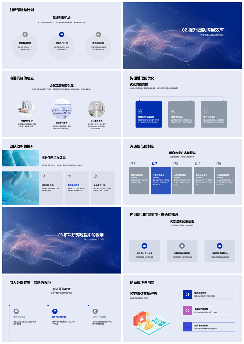 风云办公提供的生物医疗化学团队创新管理培训PPT模板,下载格式为pptx,一共26页,作品中文字及图均可以修改和编辑,图片更改请在作品中右键图片并更换,文字修改请直接点击文字进行修改。