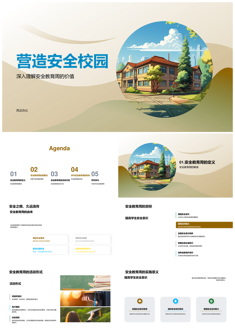 风云办公提供的安全教育周演练提升平安校园共建能力PPT模板,下载格式为pptx,一共33页,作品中文字及图均可以修改和编辑,图片更改请在作品中右键图片并更换,文字修改请直接点击文字进行修改。