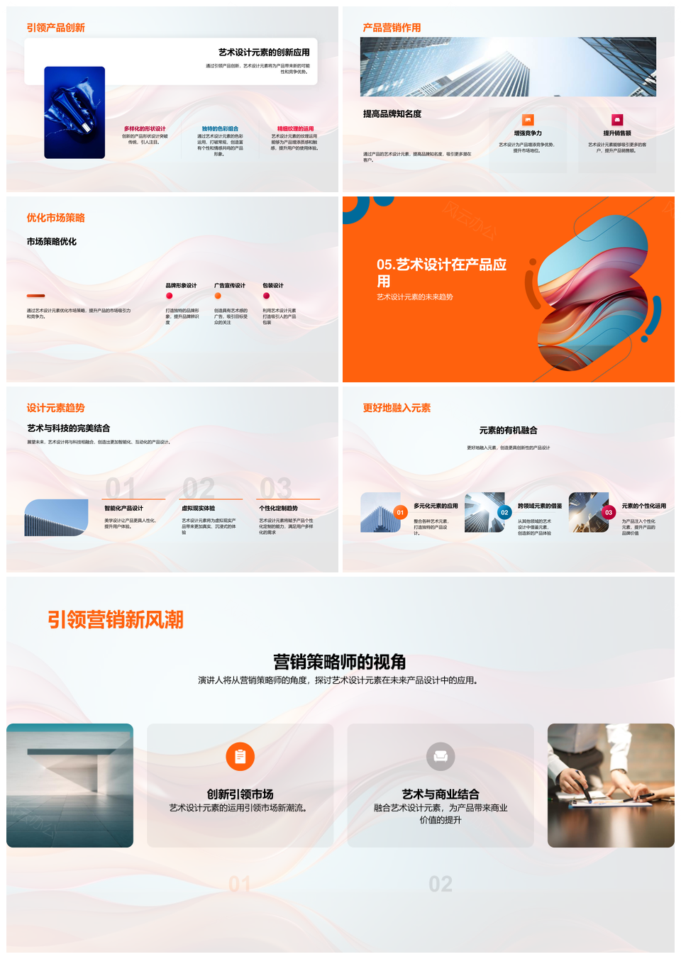 这是一张艺术设计驱动产品创新营销策略市场吸引力PPT模板,包含艺术设计、驱动、产品、创新、营销、策略、市场、吸引力等主题内容,也可用作艺术设计驱动产品创新营销策略、艺术设计驱动营销策略市场吸引力、驱动产品创新营销策略市场吸引力、艺术设计驱动产品创新、艺术设计驱动营销策略、艺术设计驱动市场吸引力、驱动产品创新营销策略、驱动营销策略市场吸引力、产品创新营销策略市场吸引力、艺术设计驱动、驱动产品创新、驱动营销策略、驱动市场吸引力、产品创新营销策略、营销策略市场吸引力等PPT场景使用。 风云办公提供的艺术设计驱动产品创新营销策略市场吸引力PPT模板,下载格式为pptx,一共25页,作品中文字及图均可以修改和编辑,图片更改请在作品中右键图片并更换,文字修改请直接点击文字进行修改。