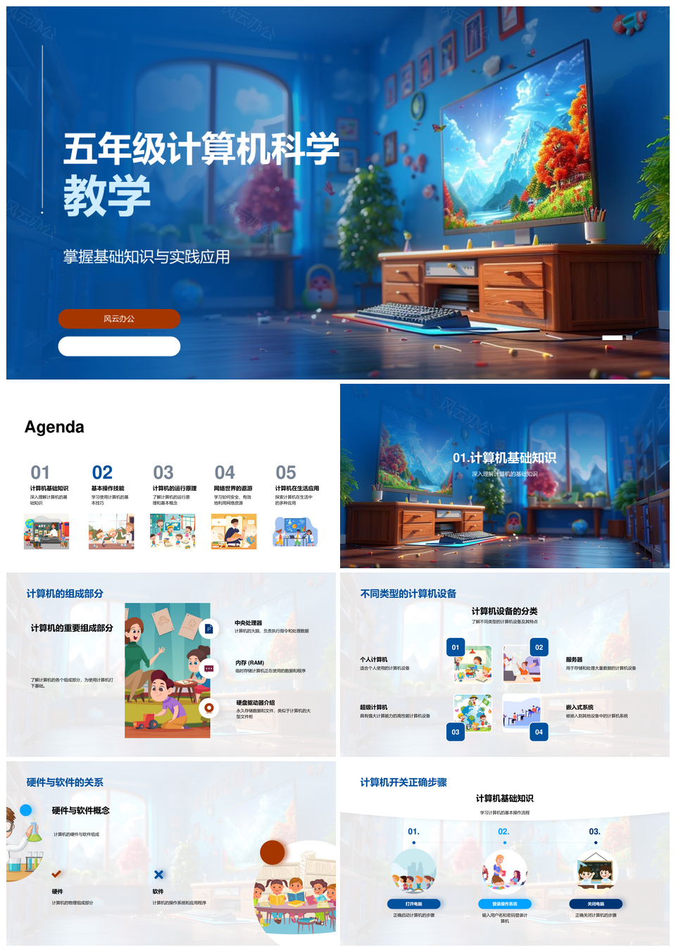 2025五年级计算机科学教学基础编程网络安全软硬件网络PPT模板推荐