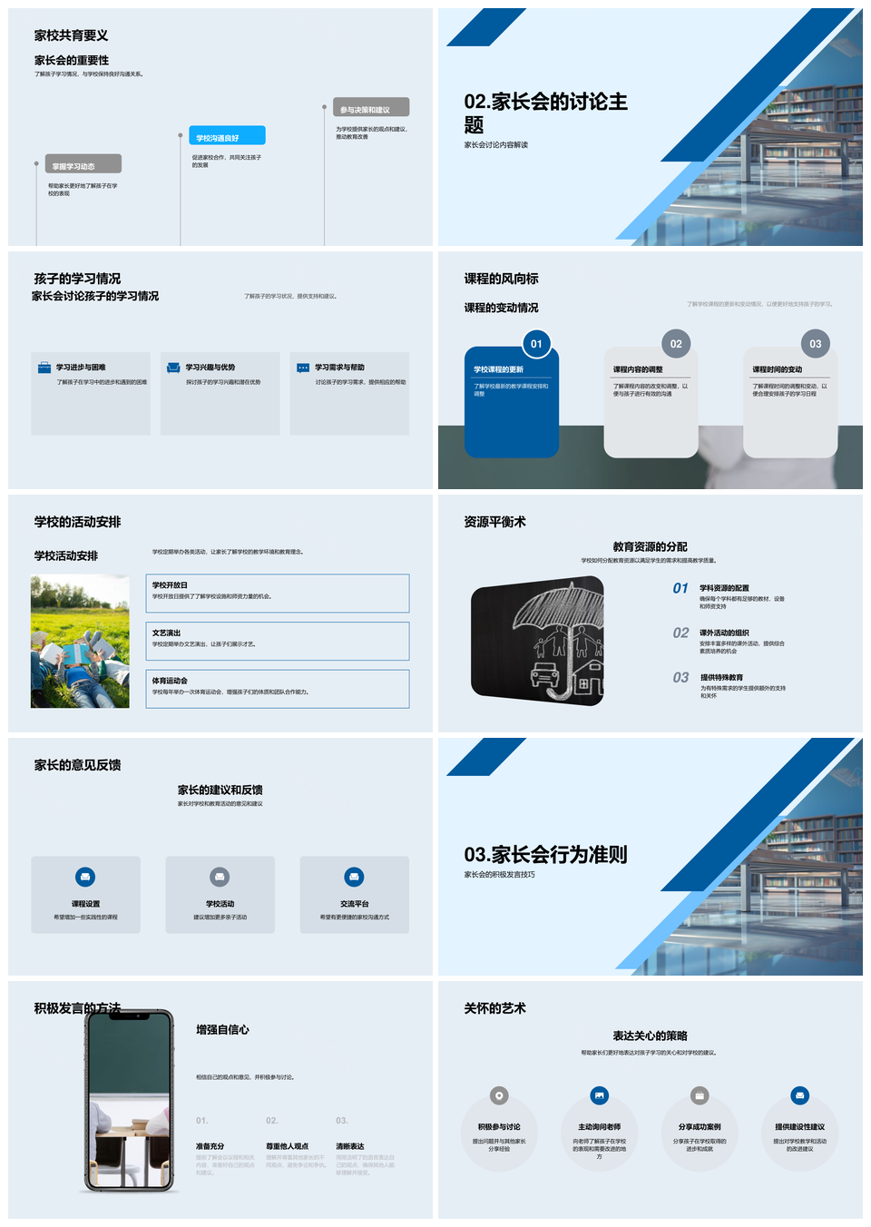 风云办公提供的家长会沟通学习课程活动参与策略PPT模板,下载格式为pptx,一共33页,作品中文字及图均可以修改和编辑,图片更改请在作品中右键图片并更换,文字修改请直接点击文字进行修改。