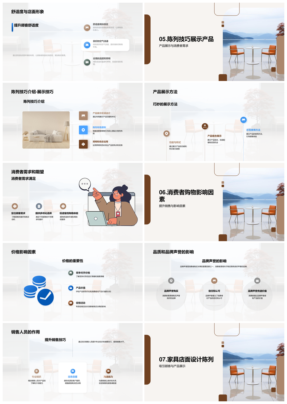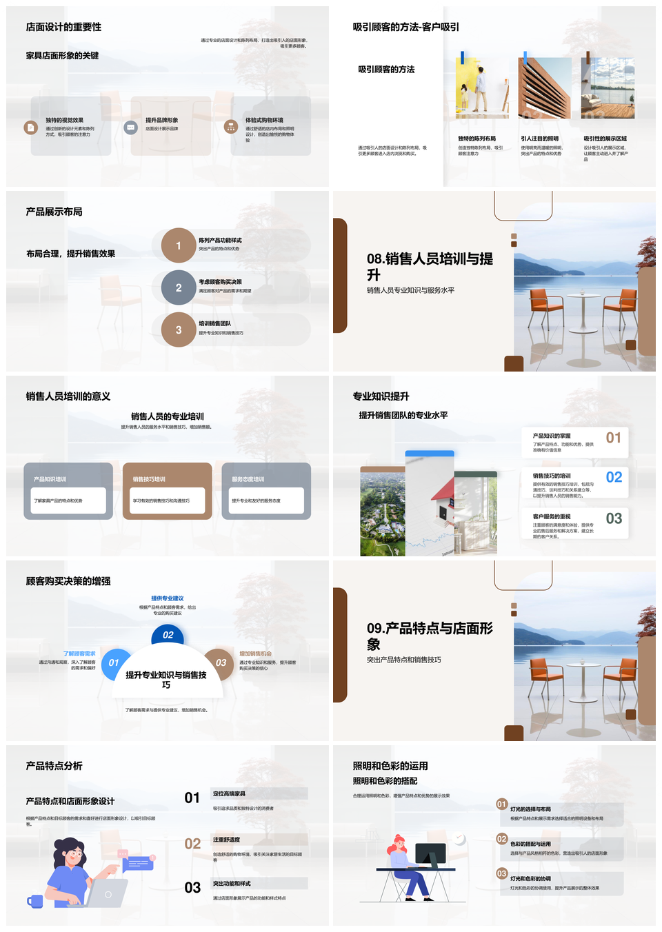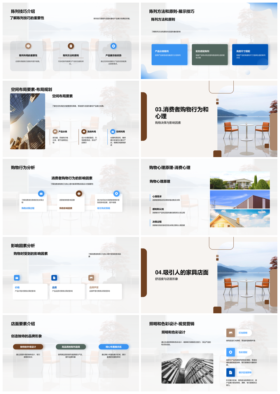 这是一张家具零售店设计陈列技巧成功案例优势创新亮点PPT模板,包含家具零售店、设计、陈列技巧、成功案例、优势、创新亮点等主题内容,也可用作家具零售店设计陈列技巧成功案例优势创新亮点、家具零售店设计陈列技巧成功案例、零售店设计陈列技巧成功案例、设计陈列技巧成功案例优势、陈列技巧成功案例优势创新、成功案例优势创新亮点、家具零售店设计陈列技巧、家具零售店成功案例优势、零售店设计陈列技巧、设计陈列技巧创新亮点、陈列技巧成功案例亮点、家具零售店优势创新、设计陈列优势创新、成功案例创新亮点、零售店设计陈列等PPT场景使用。 风云办公提供的家具零售店设计陈列技巧成功案例优势创新亮点PPT模板,下载格式为pptx,一共40页,作品中文字及图均可以修改和编辑,图片更改请在作品中右键图片并更换,文字修改请直接点击文字进行修改。