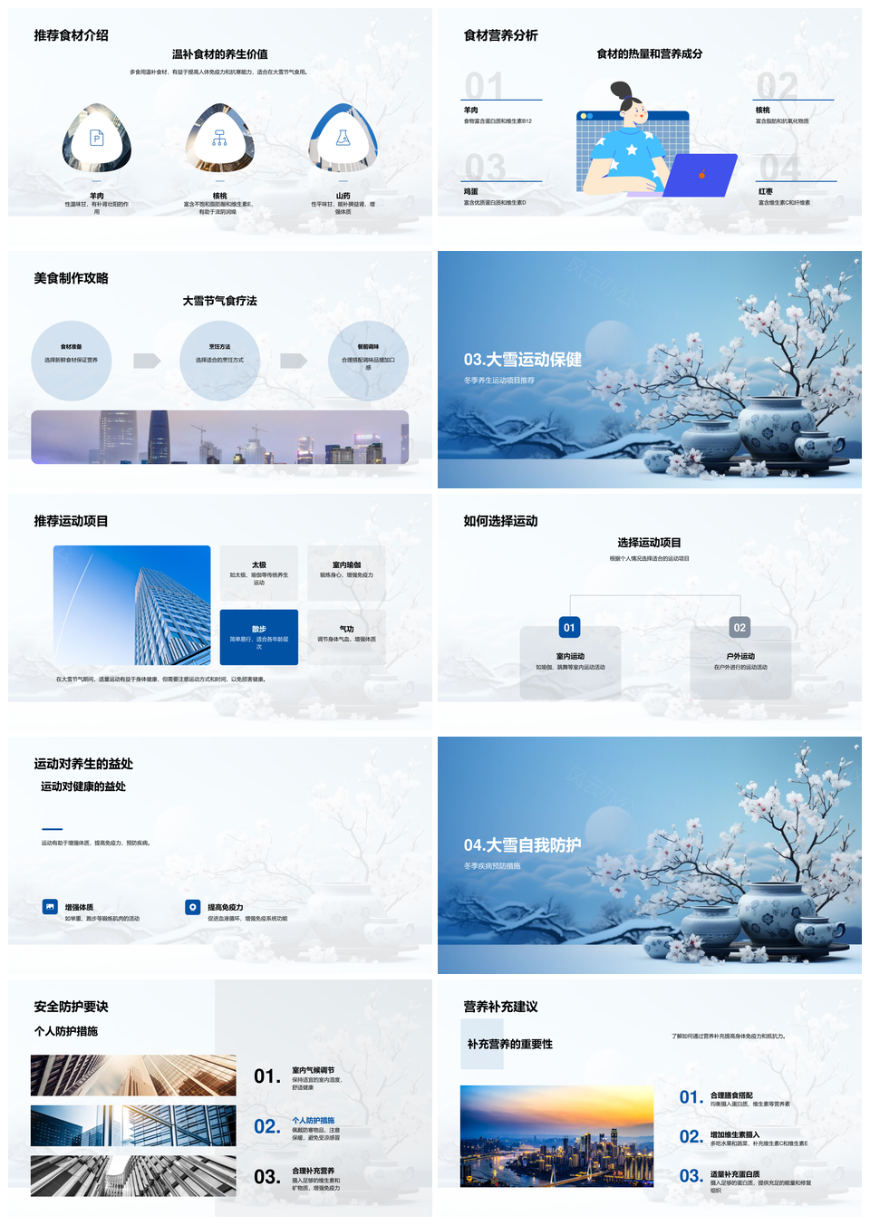 这是一张大雪节气养生温补食材羊肉核桃太极雪花PPT模板,包含大雪节气、养生、温补食材、羊肉、核桃、太极雪花等主题内容,也可用作大雪节气养生温补、大雪节气温补食材、大雪节气羊肉核桃、养生温补食材羊肉、养生温补羊肉核桃、温补食材羊肉核桃、羊肉核桃太极雪花、大雪节气养生食材、节气养生温补羊肉、节气温补食材核桃、养生食材羊肉核桃、温补核桃太极雪花、羊肉太极雪花养生、大雪温补核桃雪花、节气食材太极养生等PPT场景使用。 风云办公提供的大雪节气养生温补食材羊肉核桃太极雪花PPT模板,下载格式为pptx,一共23页,作品中文字及图均可以修改和编辑,图片更改请在作品中右键图片并更换,文字修改请直接点击文字进行修改。