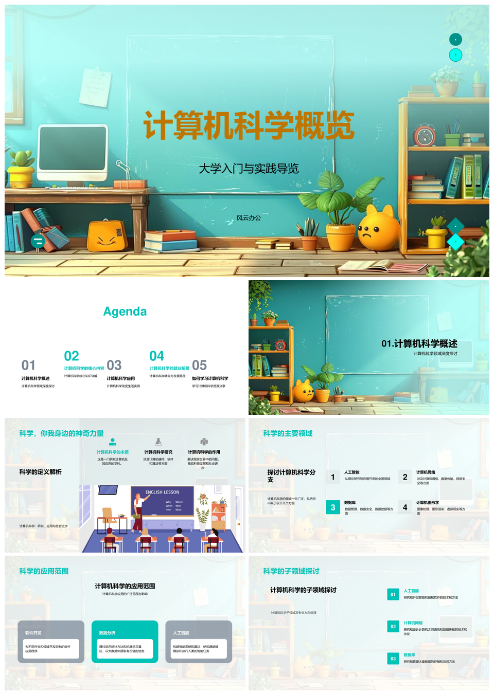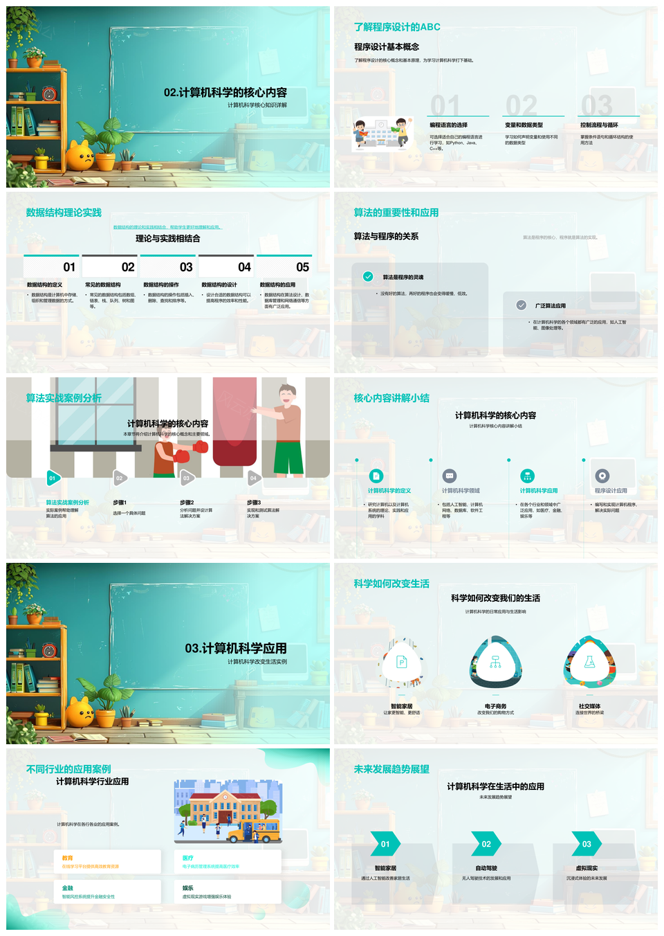 计算机科学教学理论实践数据结构算法系统编程PPT模板