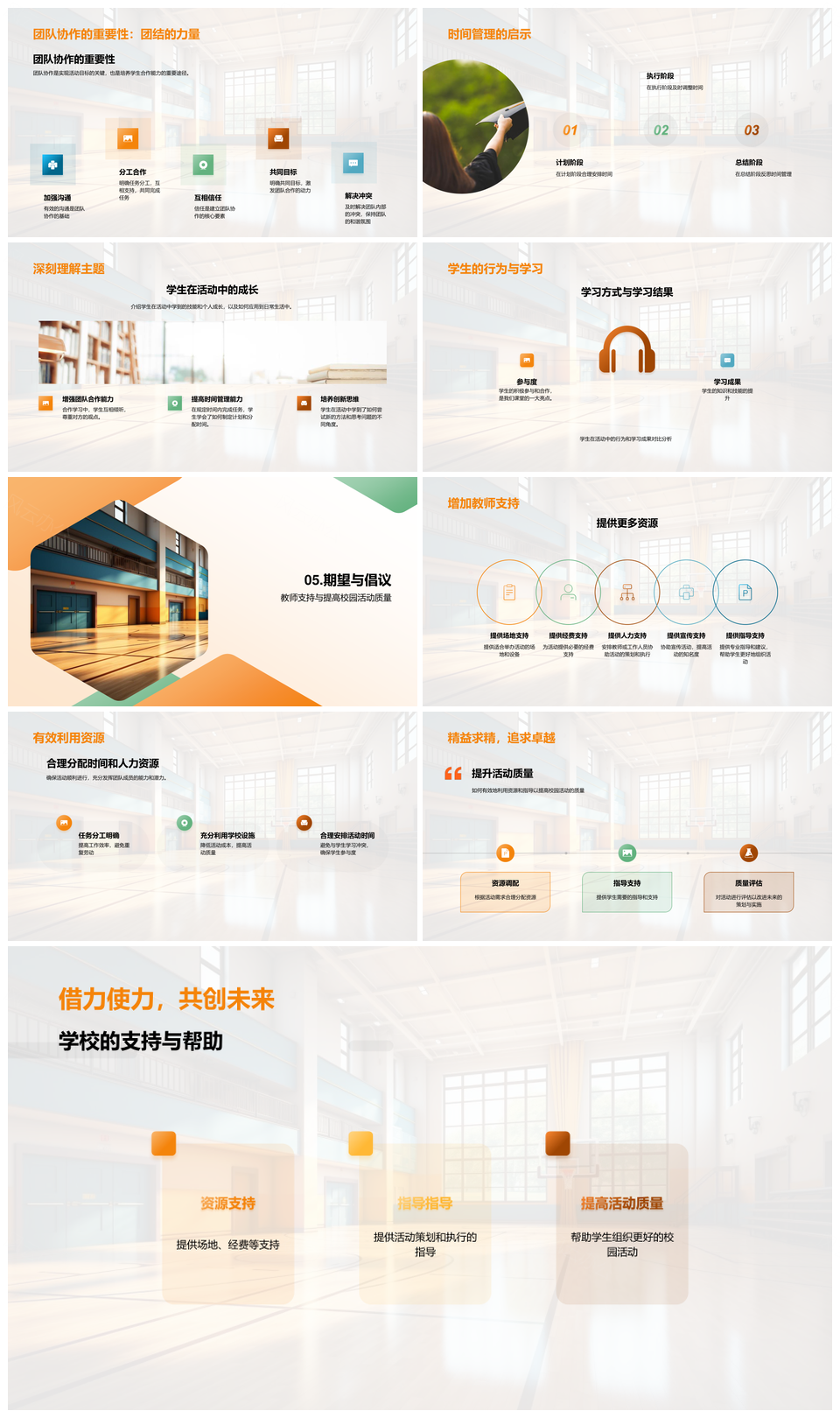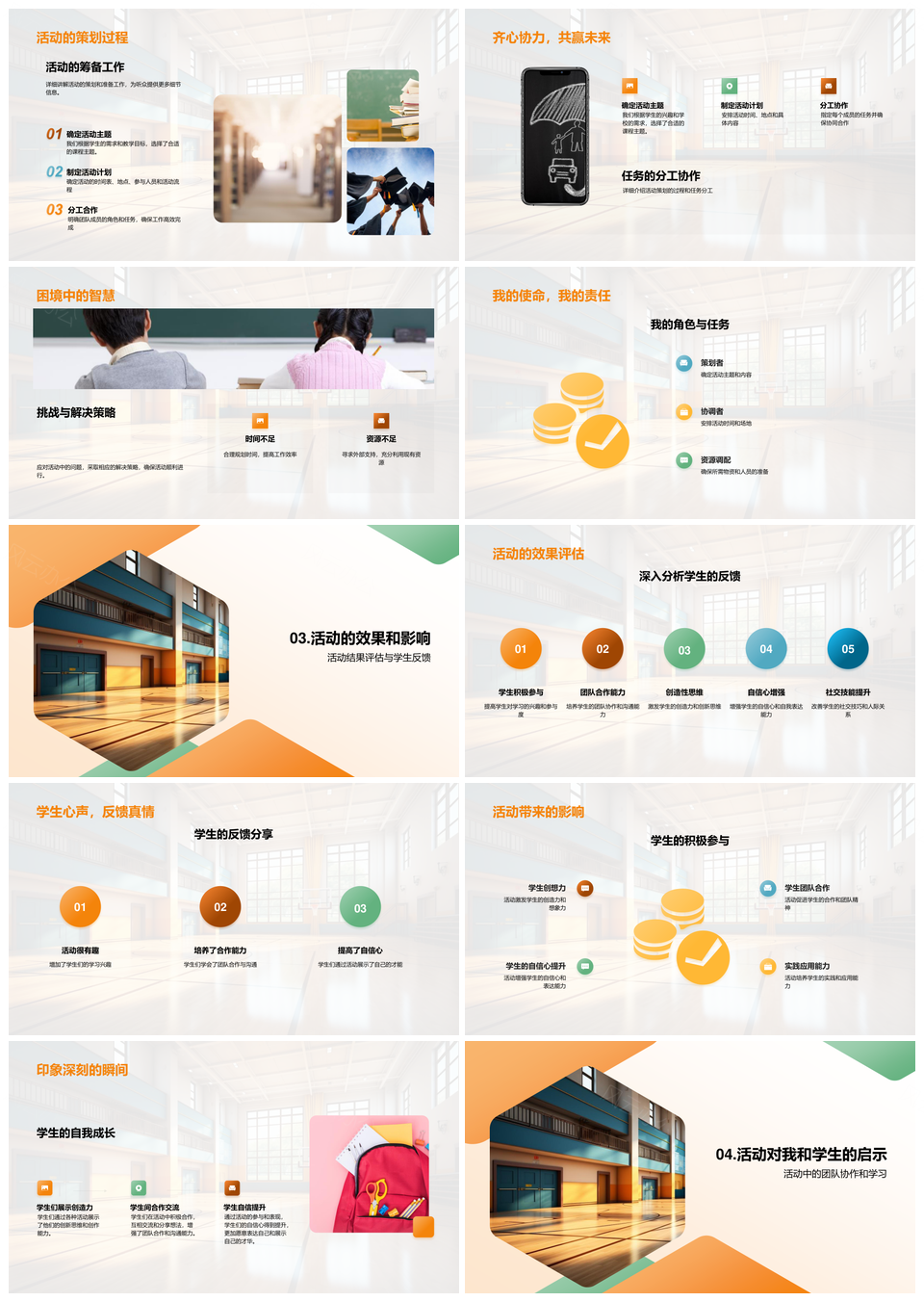 这是一张校园活动策划主题目的组织执行校建评估反馈PPT模板,包含校园、活动、策划、主题、目的、组织、执行、校建、评估、反馈等主题内容,也可用作校园活动策划组织执行、策划主题目的组织、主题目的组织执行、目的组织执行校建、组织执行校建评估、执行校建评估反馈、校建评估反馈、校园活动策划主题、策划主题目的、主题目的组织、目的组织执行、组织执行校建、执行校建评估、校建评估反馈、评估反馈等PPT场景使用。 风云办公提供的校园活动策划主题目的组织执行校建评估反馈PPT模板,下载格式为pptx,一共27页,作品中文字及图均可以修改和编辑,图片更改请在作品中右键图片并更换,文字修改请直接点击文字进行修改。