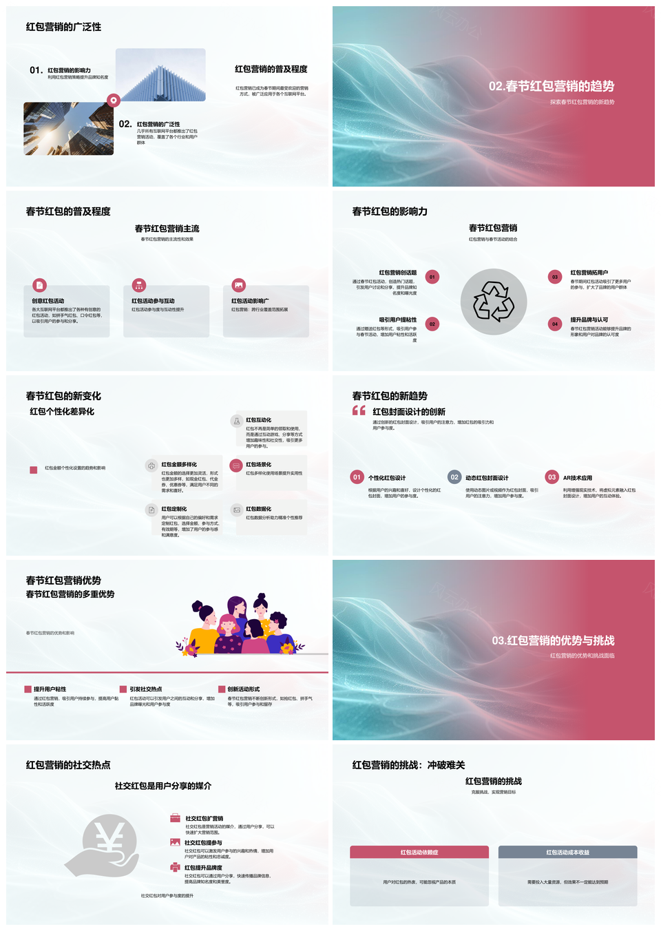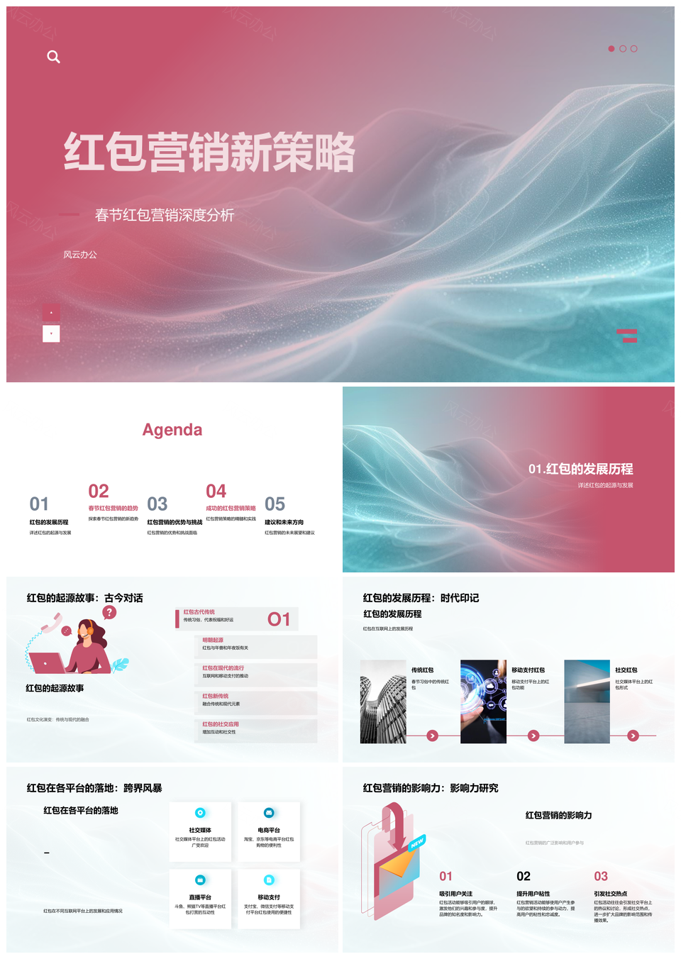 风云办公提供的红包营销策略演进与用户粘性需求PPT模板,下载格式为pptx,一共33页,作品中文字及图均可以修改和编辑,图片更改请在作品中右键图片并更换,文字修改请直接点击文字进行修改。