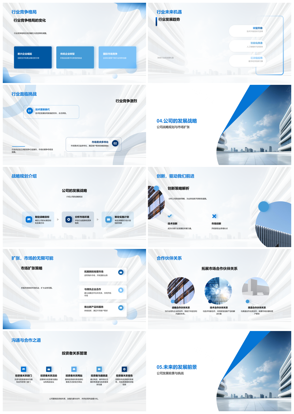 风云办公提供的公司业务发展战略与行业趋势解析PPT模板,下载格式为pptx,一共32页,作品中文字及图均可以修改和编辑,图片更改请在作品中右键图片并更换,文字修改请直接点击文字进行修改。